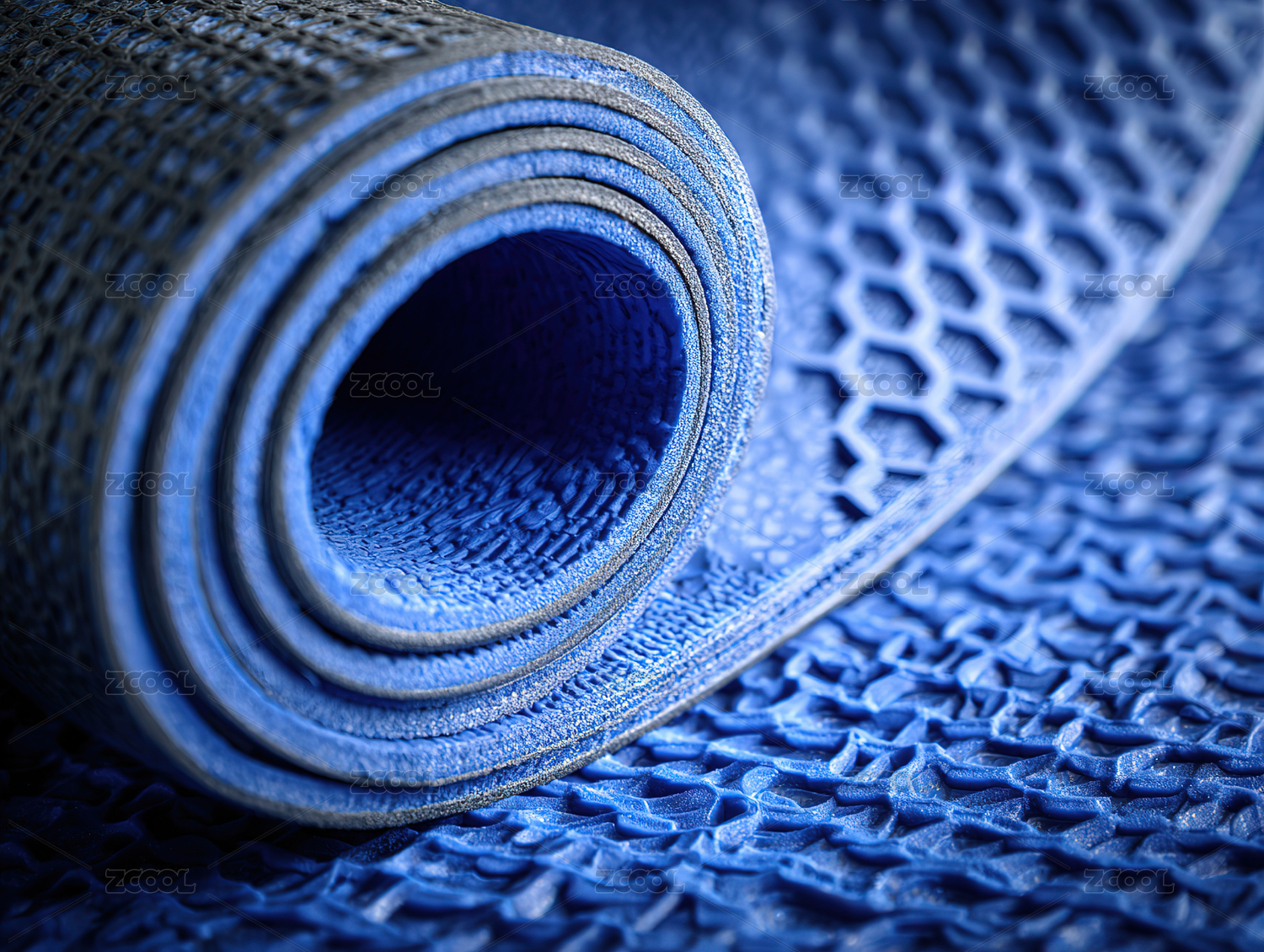 蓝色瑜伽垫特写
