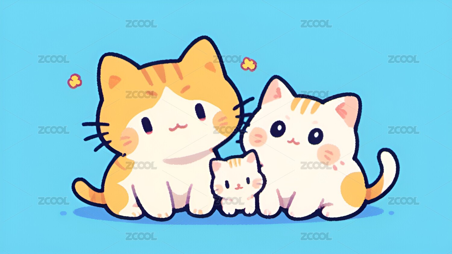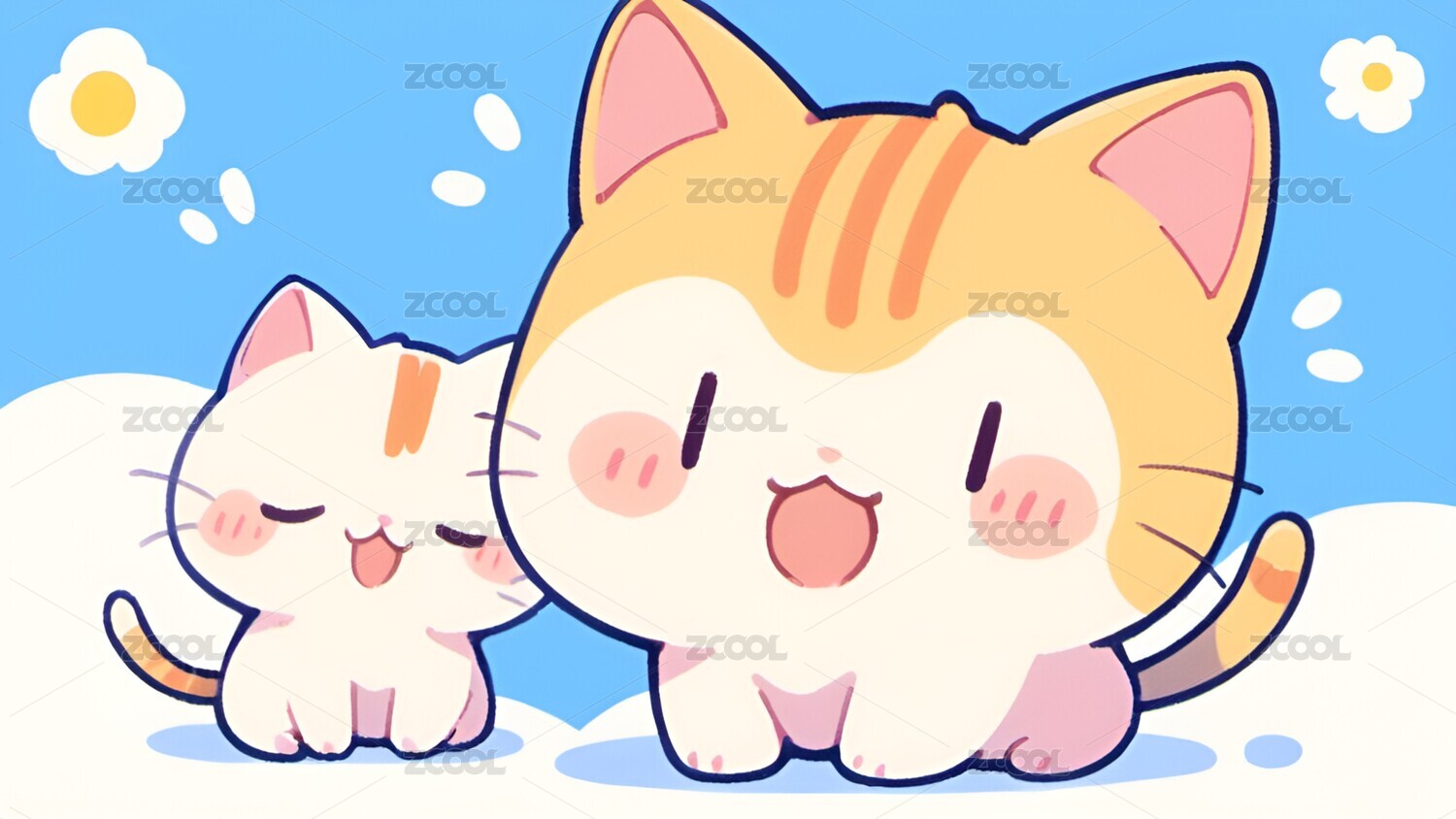 卡通,动漫,可爱,小猫,猫,动物,壁纸,插画