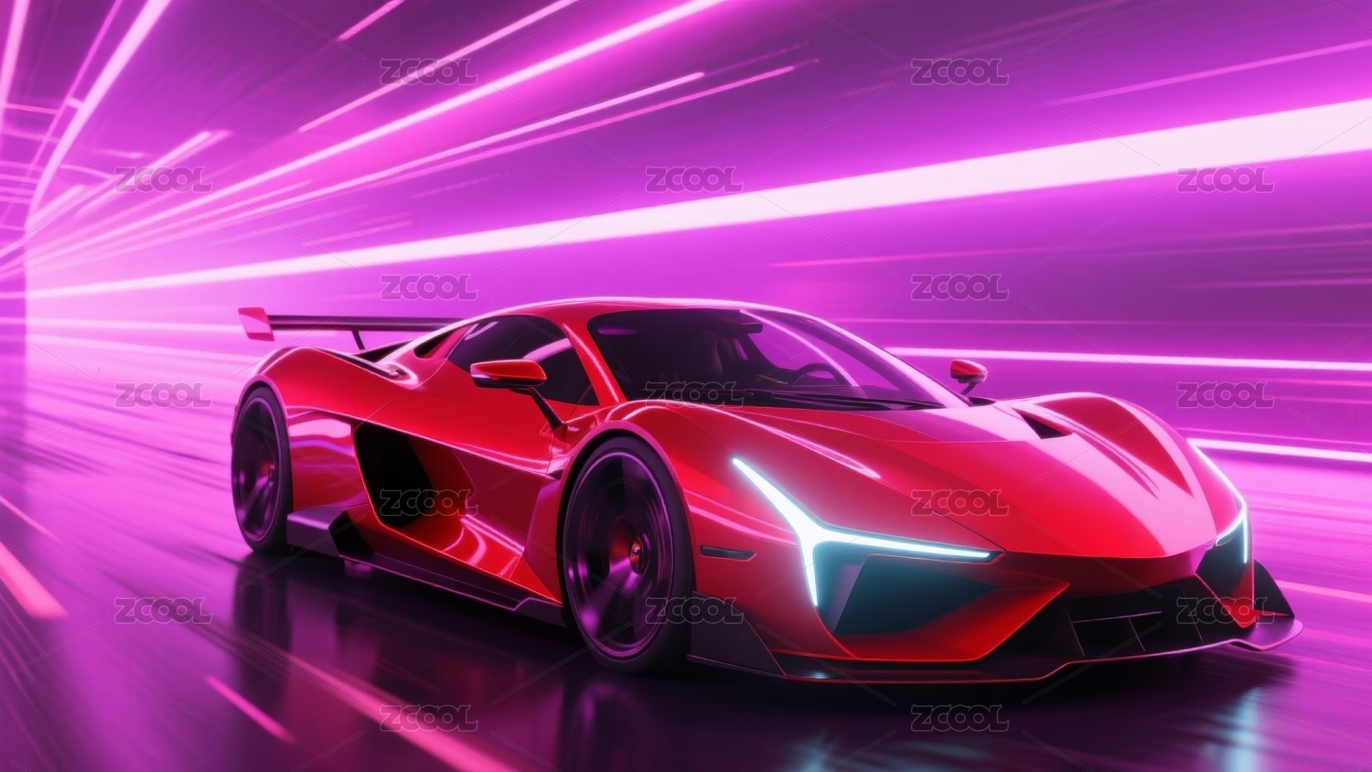 红色跑车炫酷感未来场景