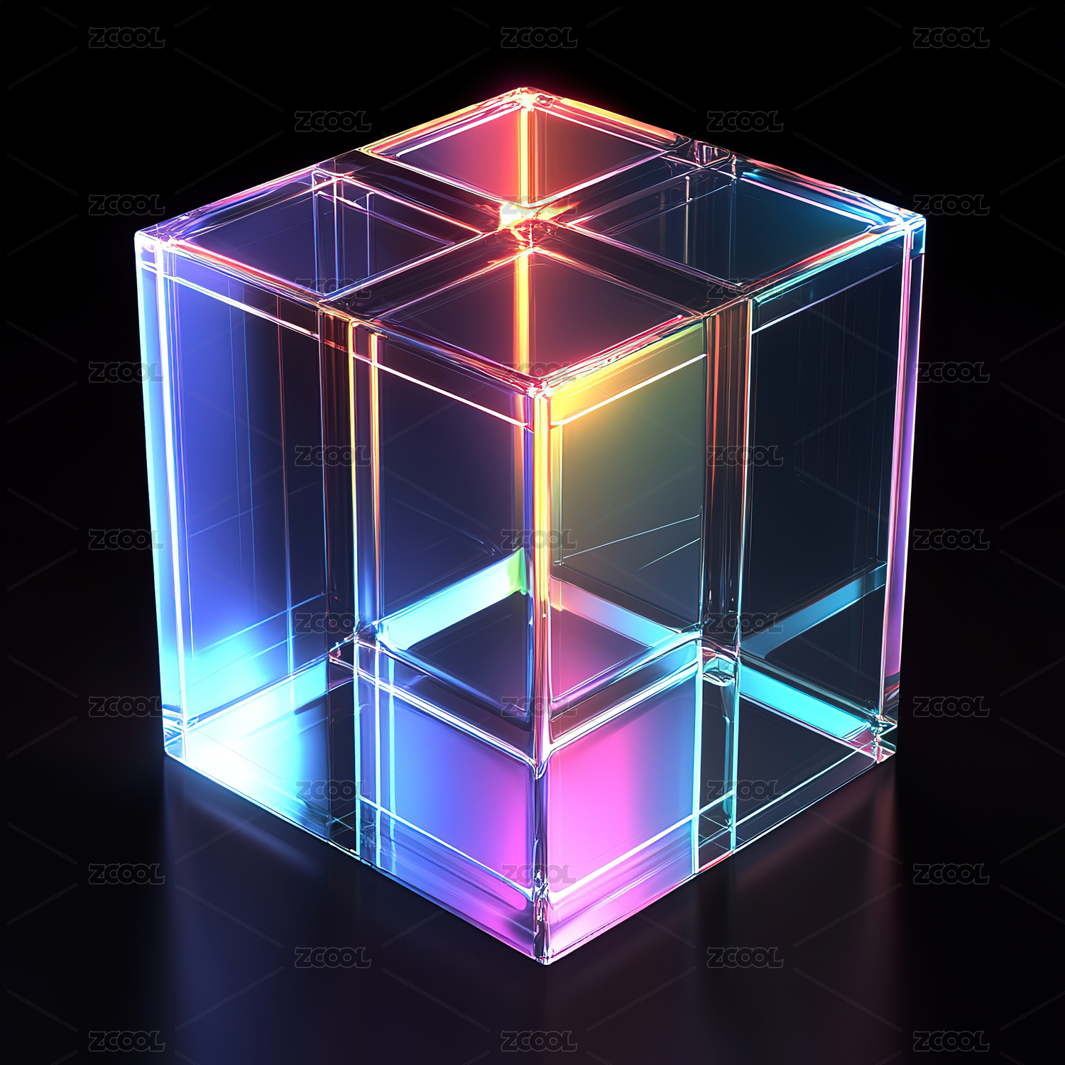 玻璃,立方体,透明,方块,渐变,彩色,几何,光影,三棱镜,立体