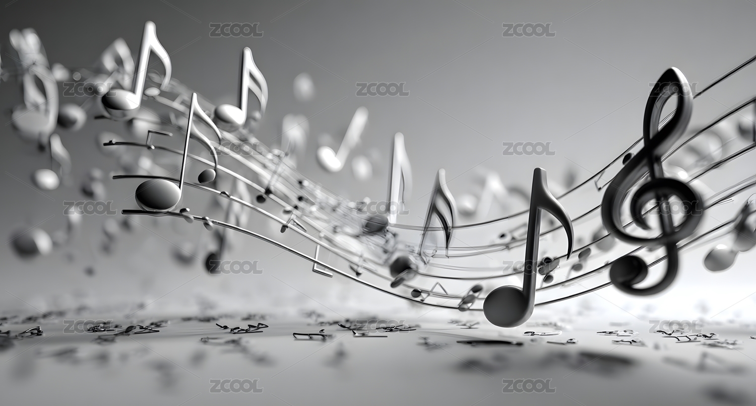 黑白音乐符号与五线谱交织的艺术图