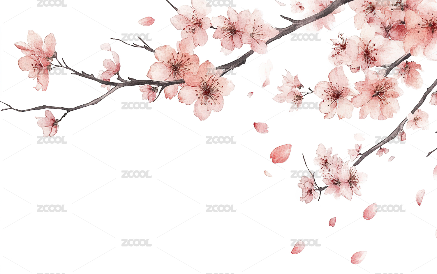 背景,创意,抽象,艺术,格式,水彩,花枝,粉色,飘落,蝴蝶