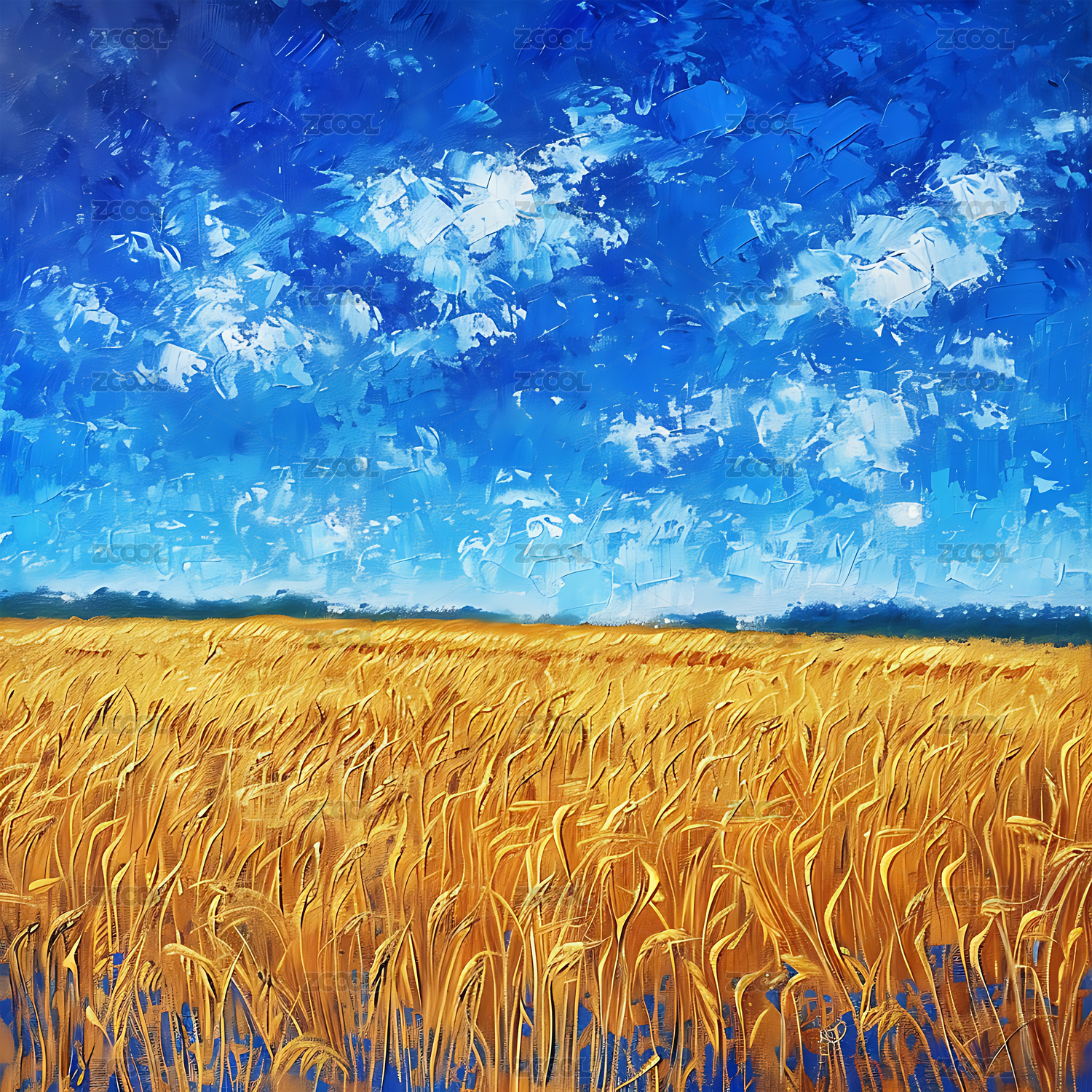 阳光明媚绿色田野风景油画抽象装饰画背景