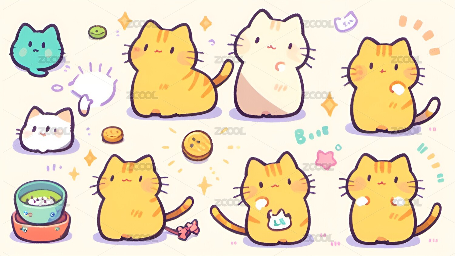 卡通,动漫,漫画,小猫,猫,可爱,治愈,插画,壁纸
