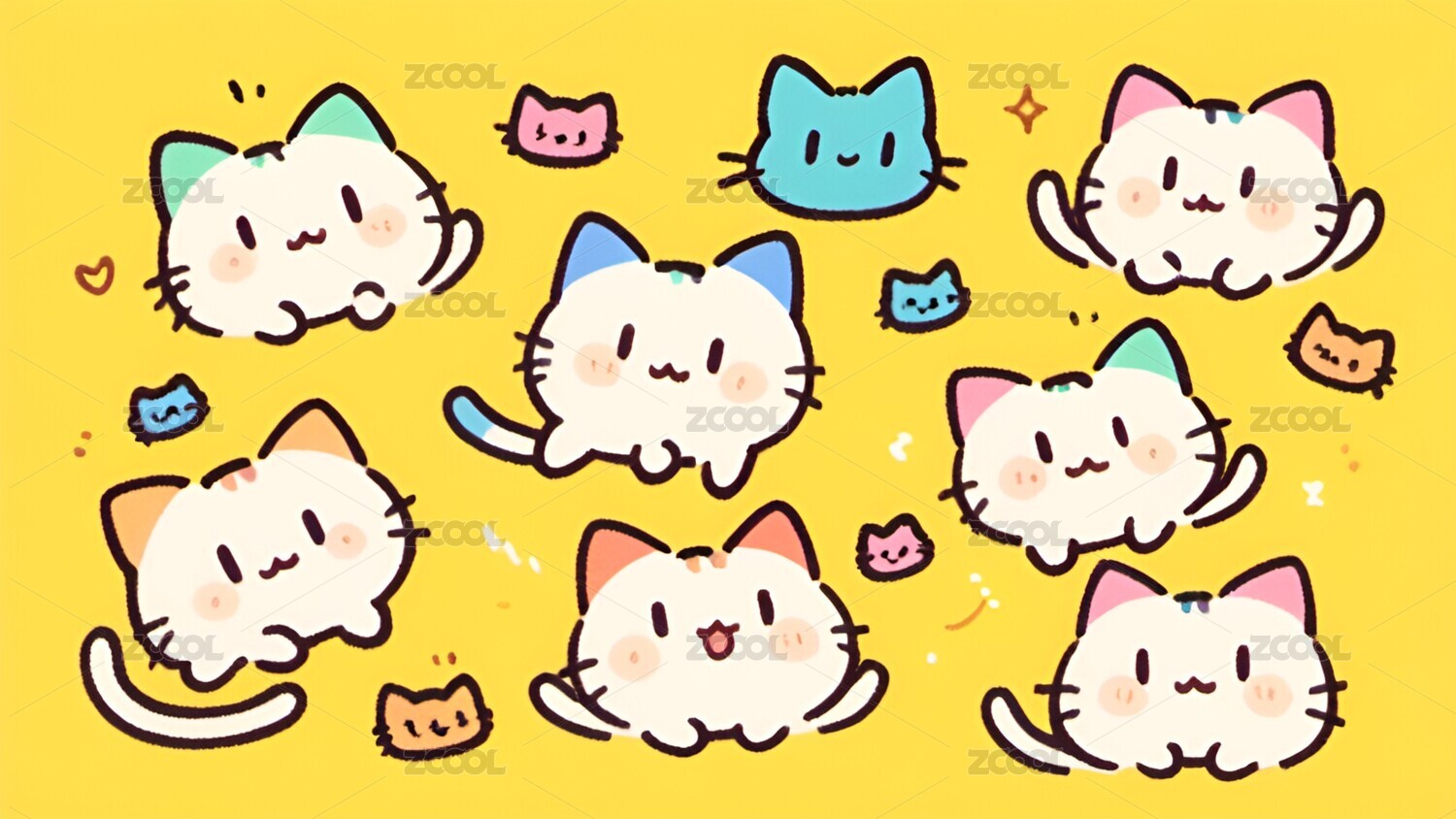 卡通,动漫,漫画,小猫,猫,可爱,治愈,壁纸,插画