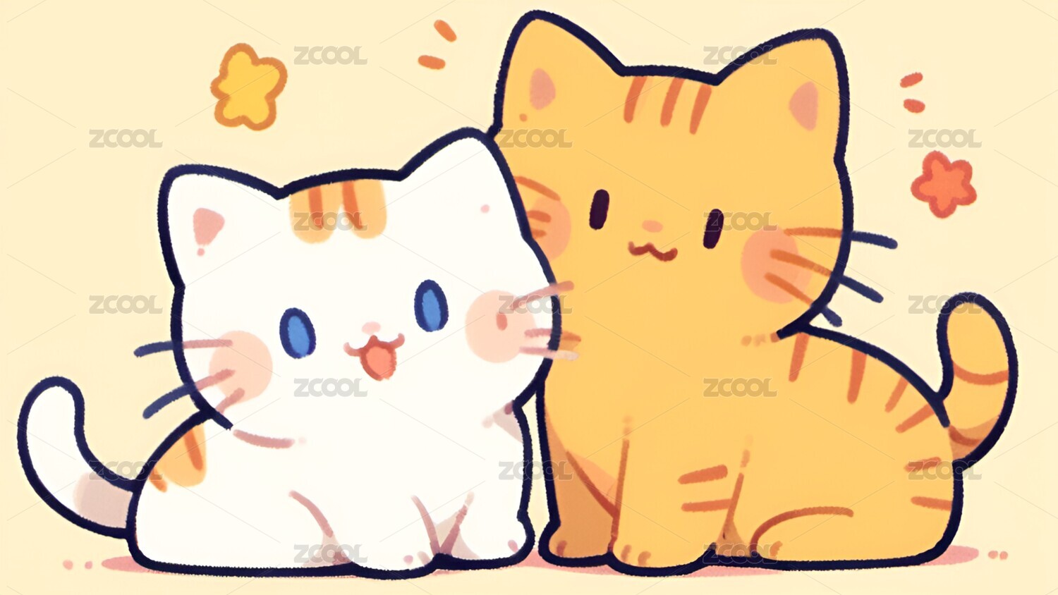 卡通,动漫,漫画,小猫,猫,可爱,治愈,壁纸,插画