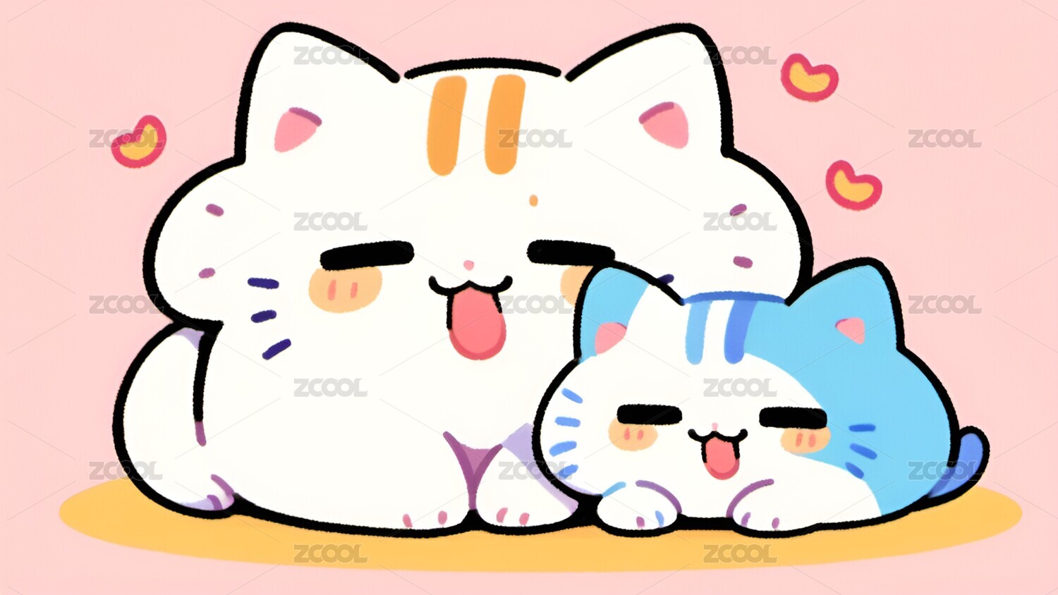 卡通,动漫,小猫,猫,可爱,治愈,壁纸,插画,漫画,宠物