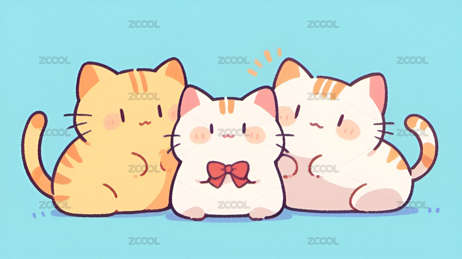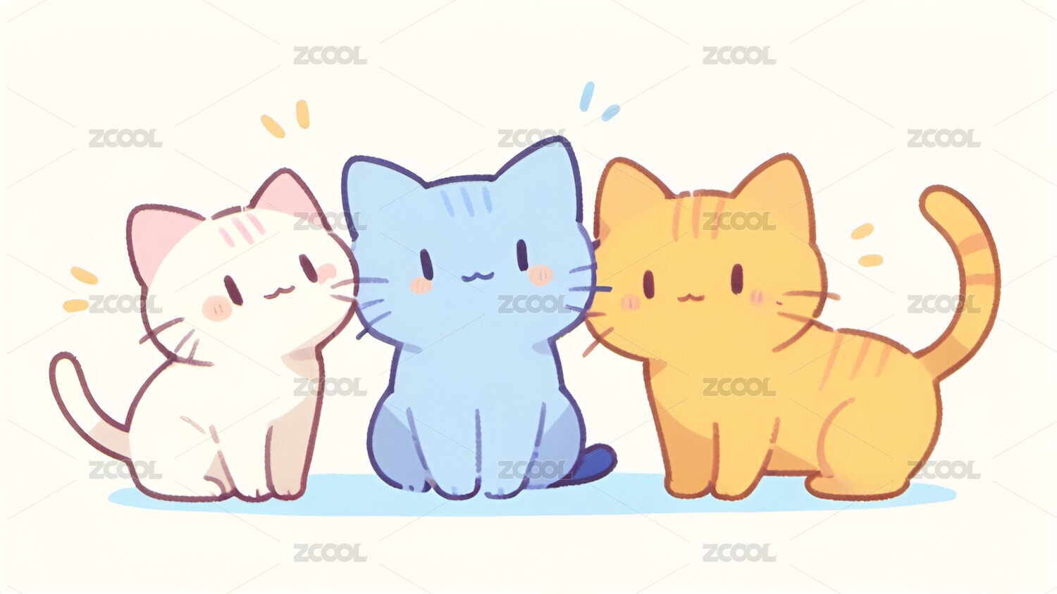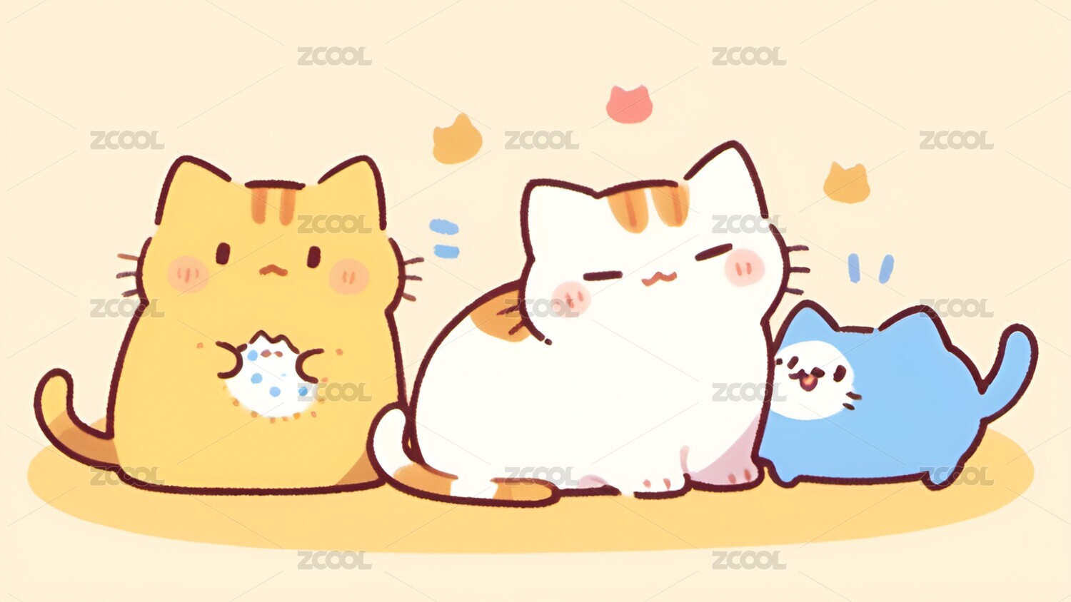 卡通,动漫,小猫,猫,可爱,治愈,壁纸,插画,漫画,宠物
