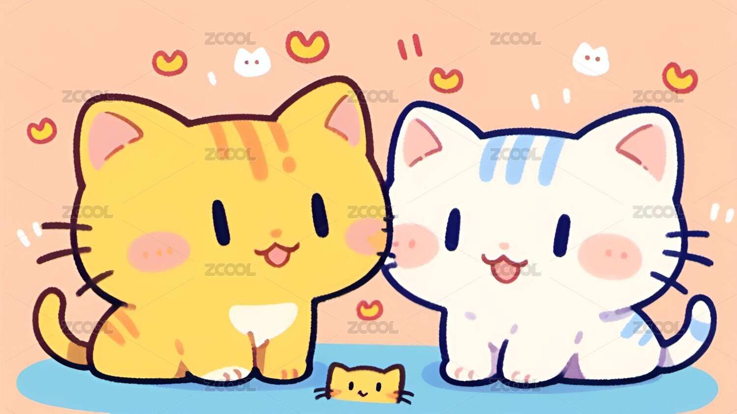 卡通,小猫,猫,可爱,动物,壁纸,插画,动漫,宠物