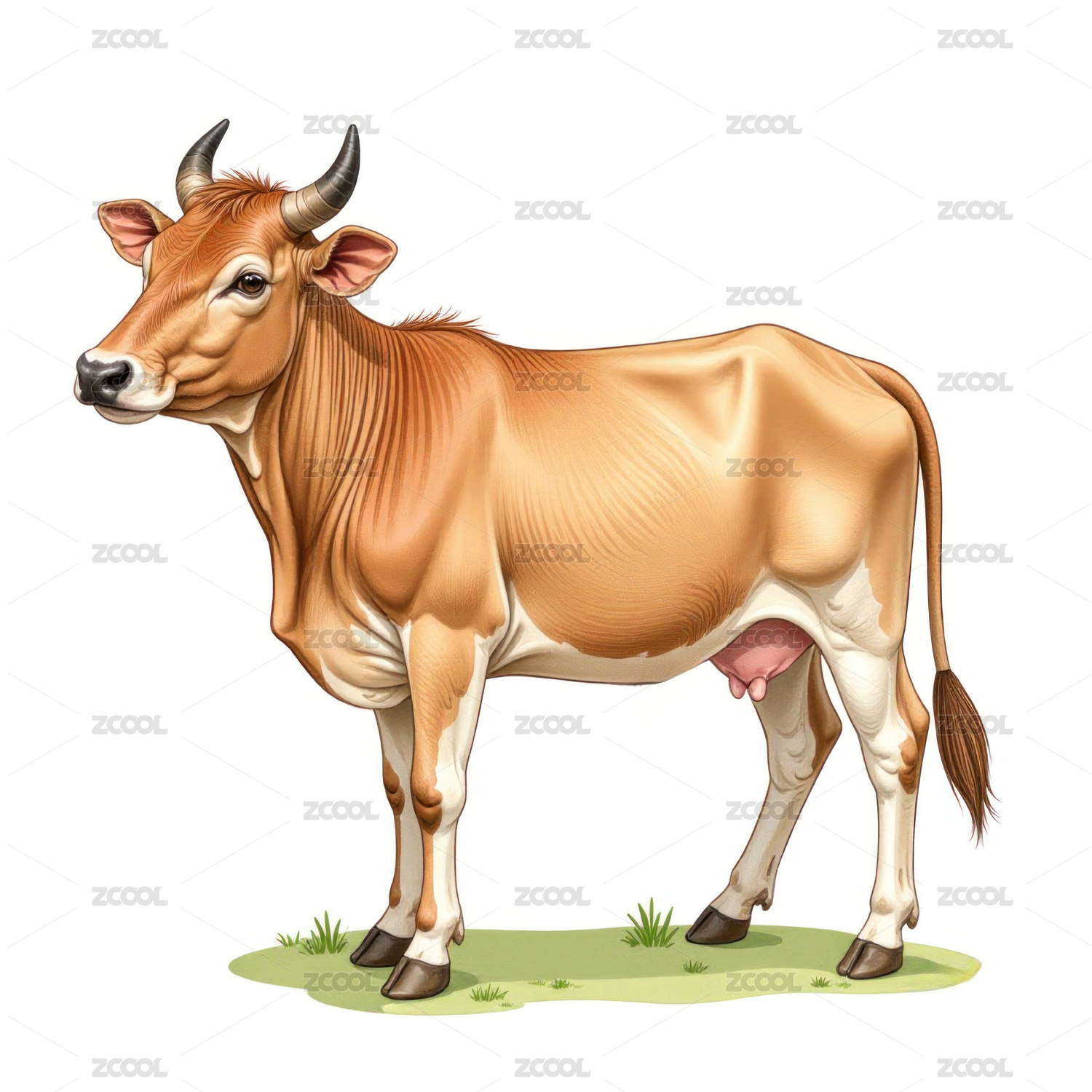 公牛插画风格畜牧场景