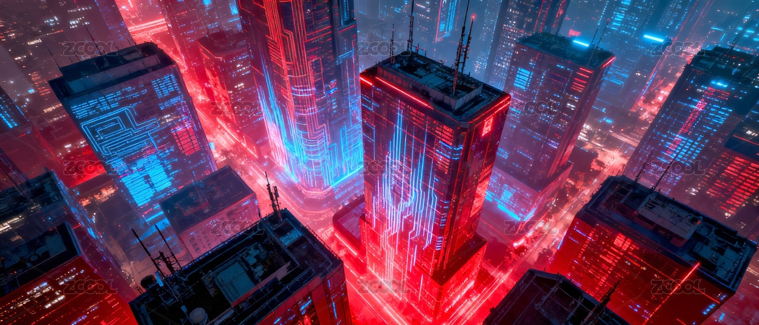 未来城市电路建筑夜景