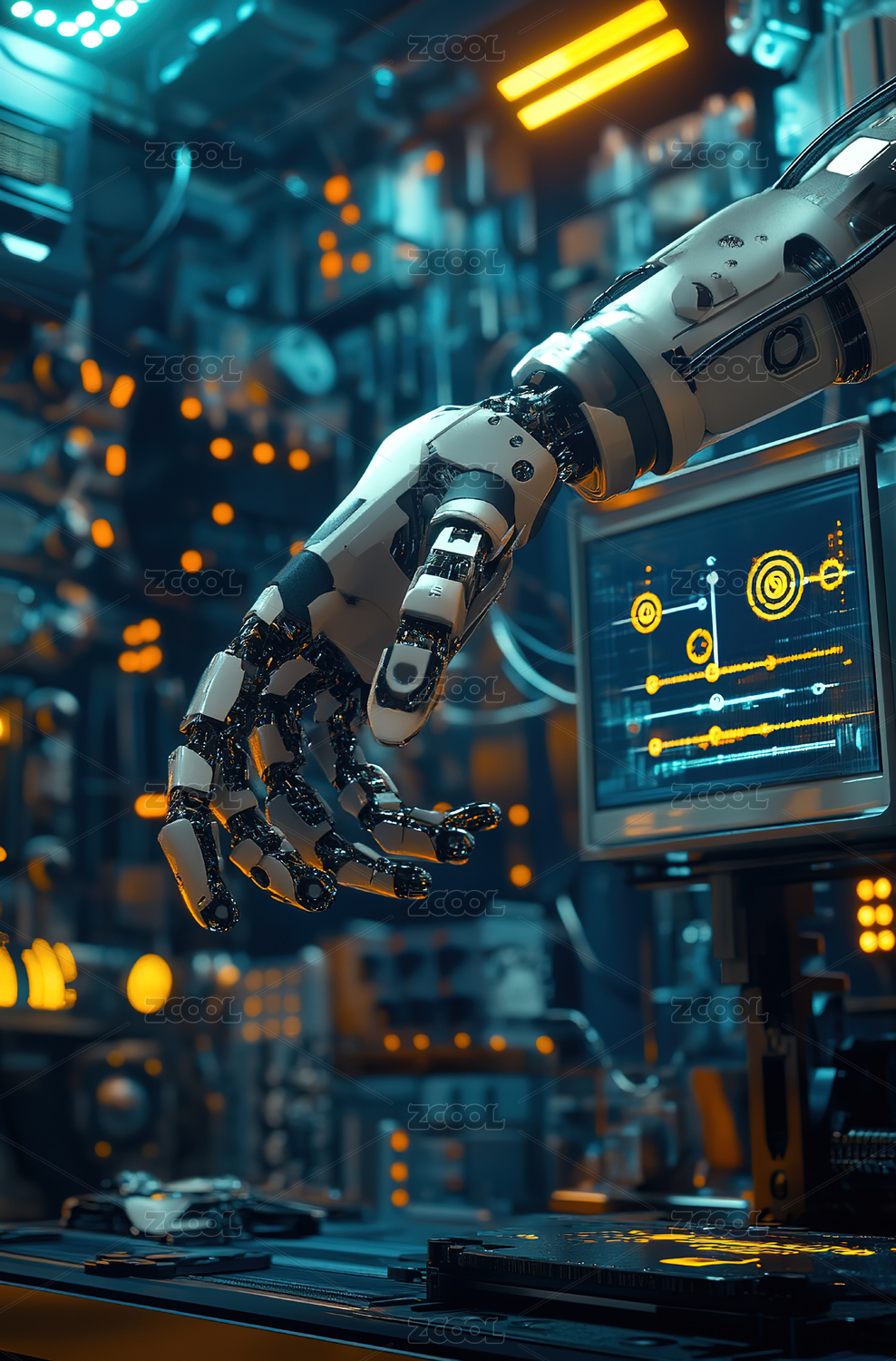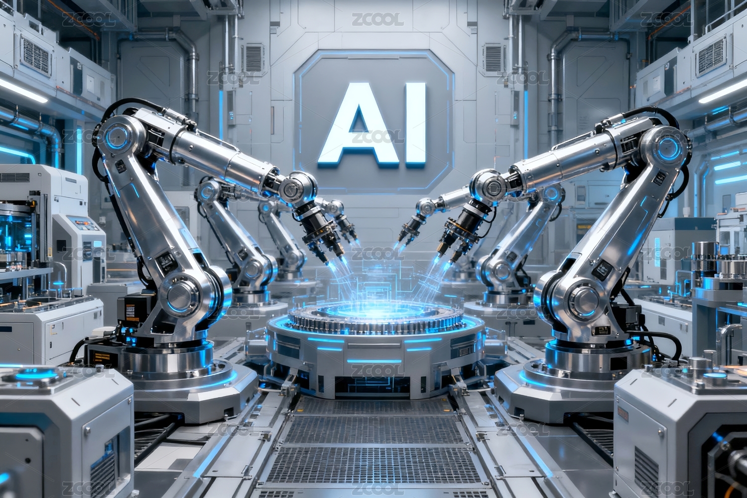 主视觉,商业,壁纸,智能,未来,机械臂,场景,芯片,电路,制造