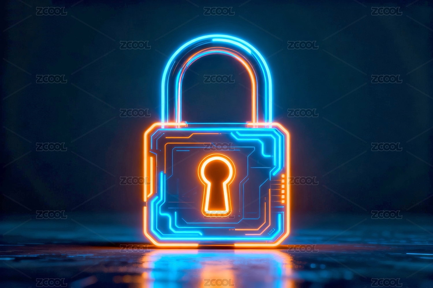 霓虹锁具科技感安全场景