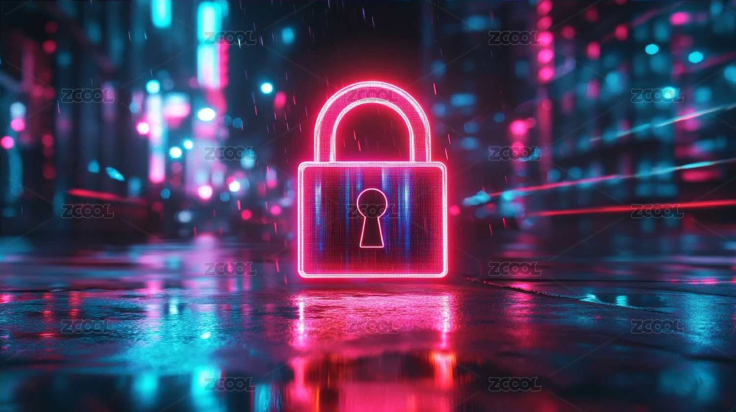 霓虹锁具赛博网络安全场景