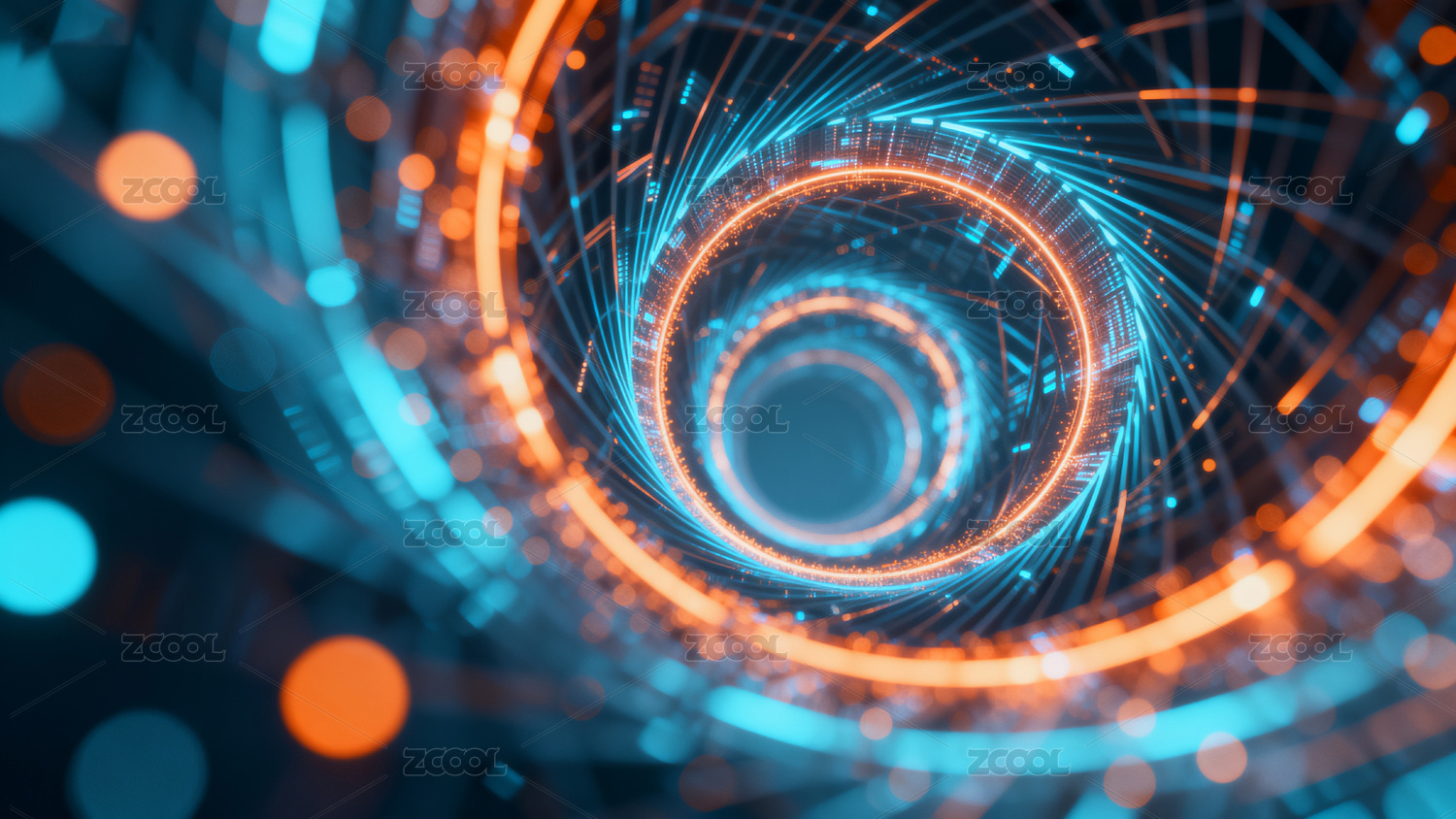 三维蓝橙渐变科技光效漩涡