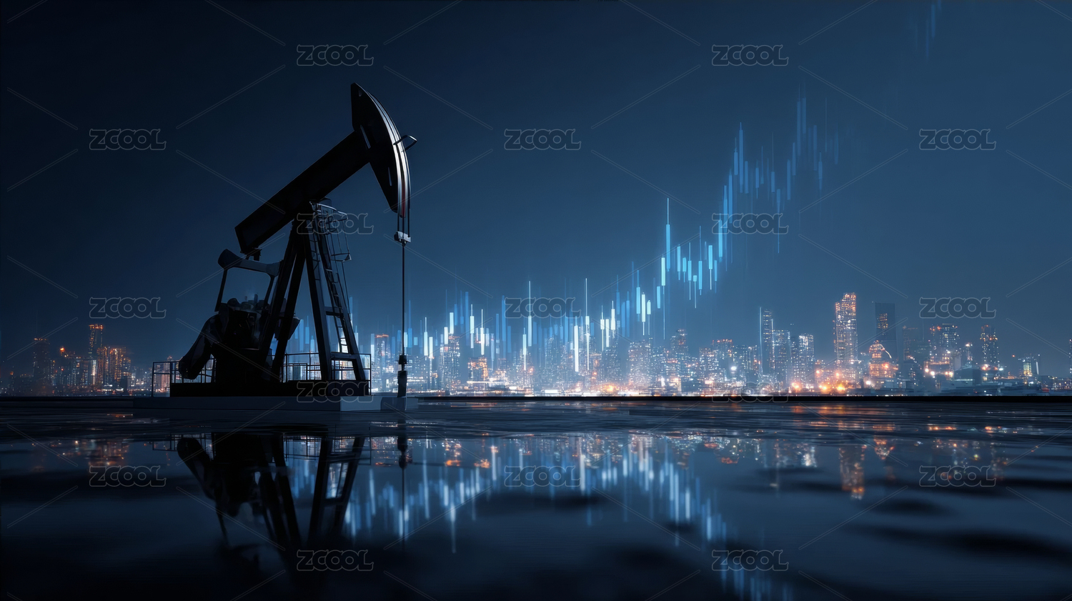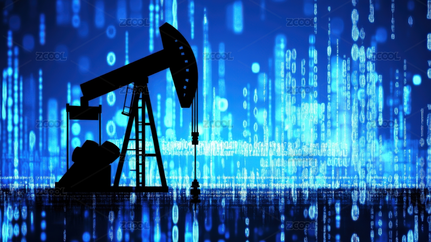 磕头机,科技,工业,插画,油田,油气,蓝色,夜晚,无人,天空