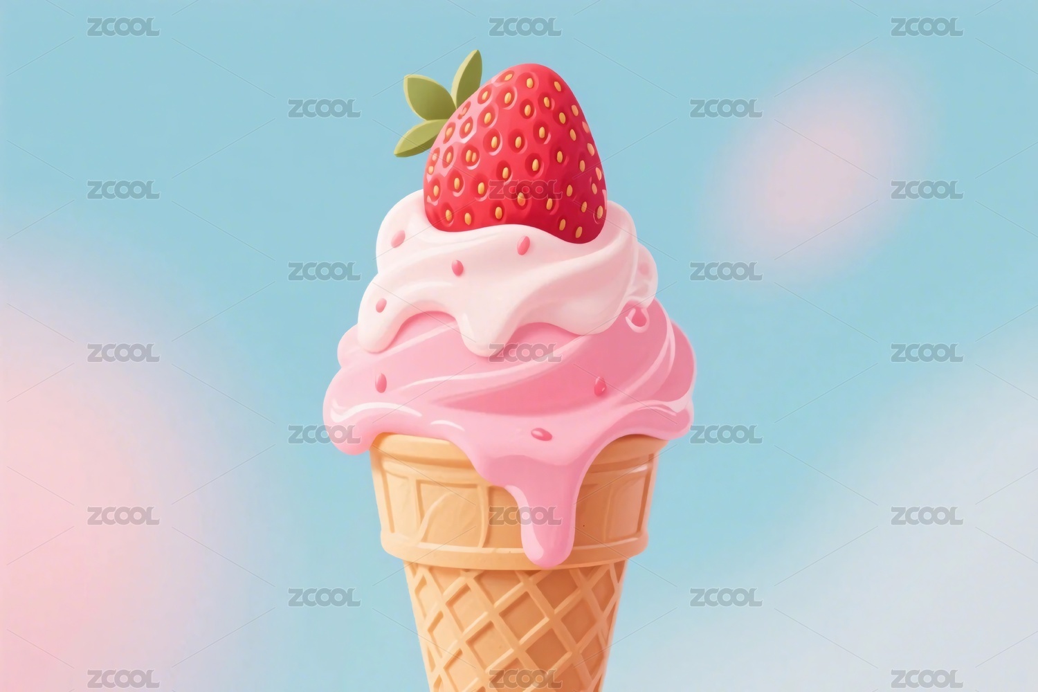 草莓冰淇淋甜筒插画