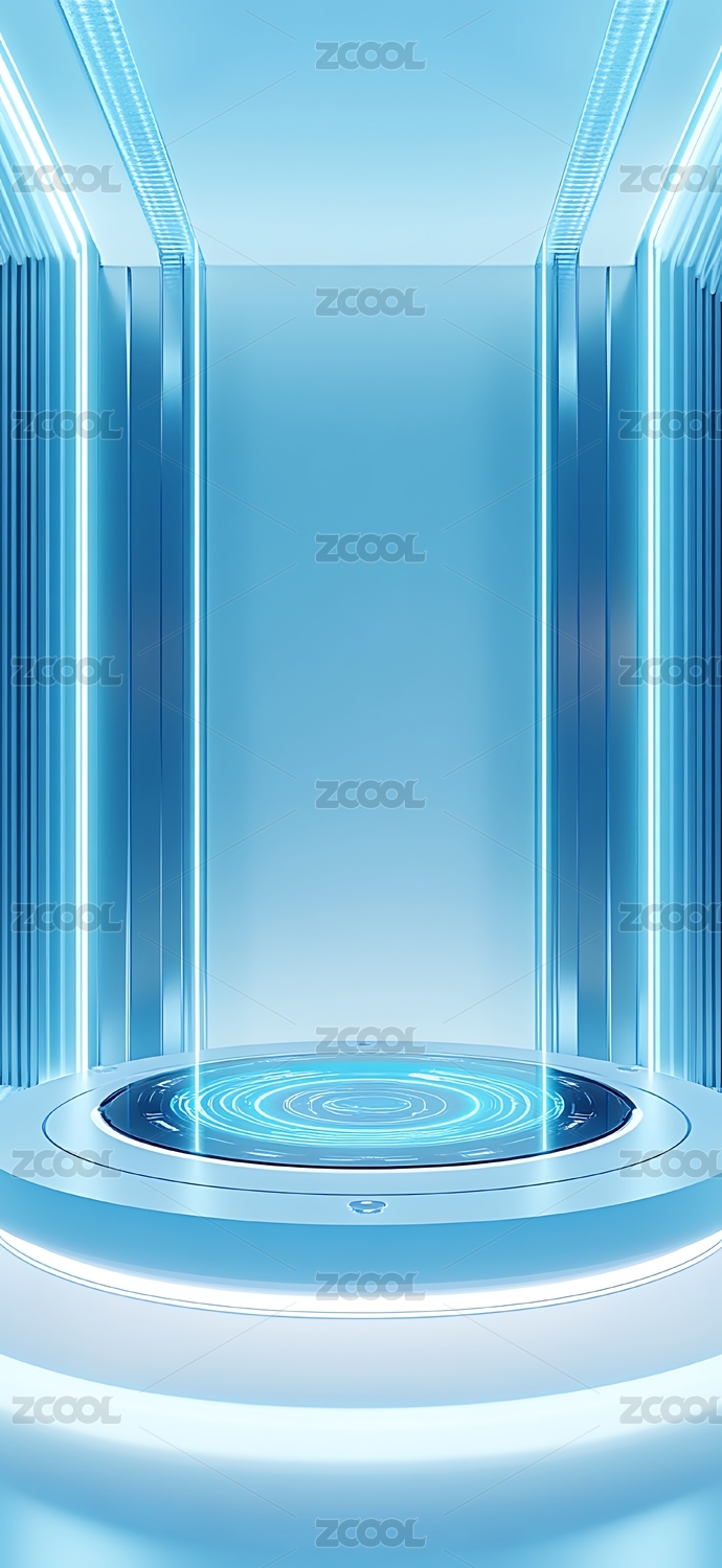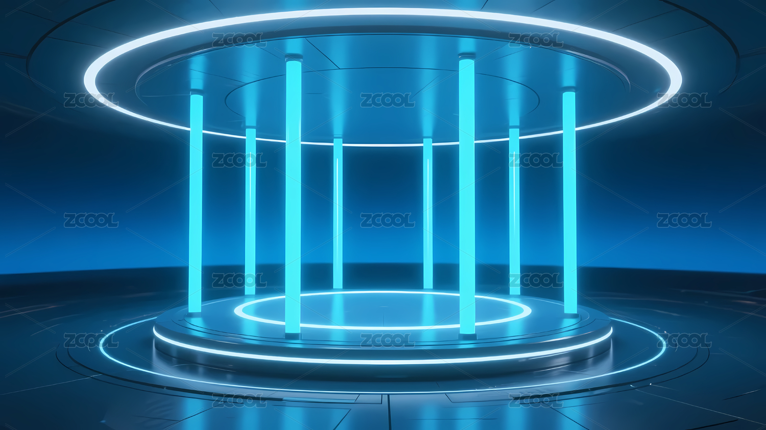 蓝色,科技,发光,深色,背景,光柱,圆环,未来,光线,环绕