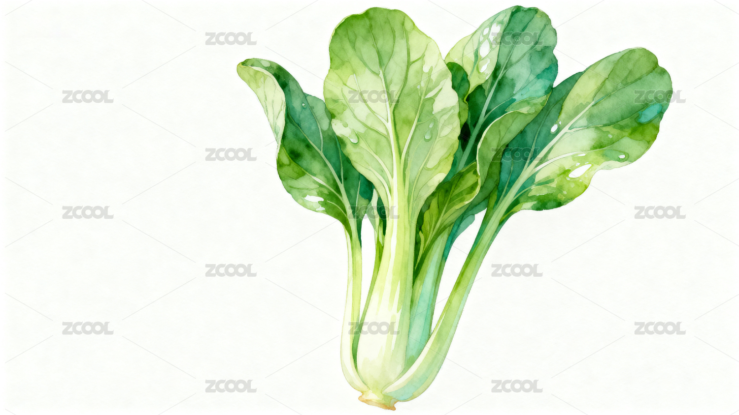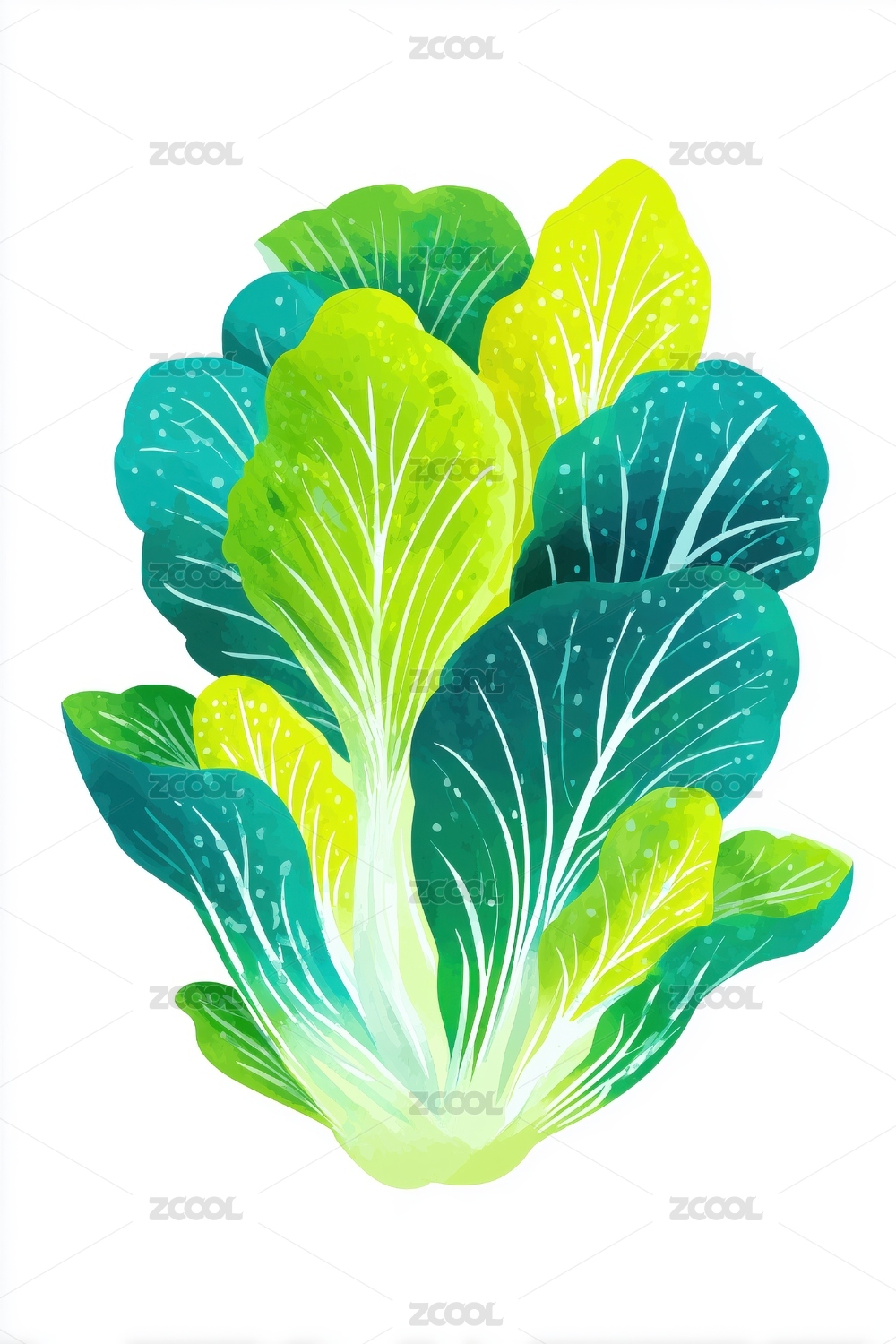 白背景新鲜白菜有机蔬菜手绘扁平水彩插画
