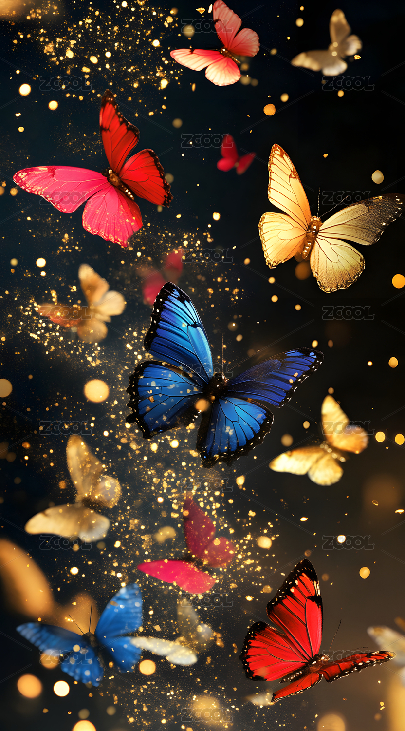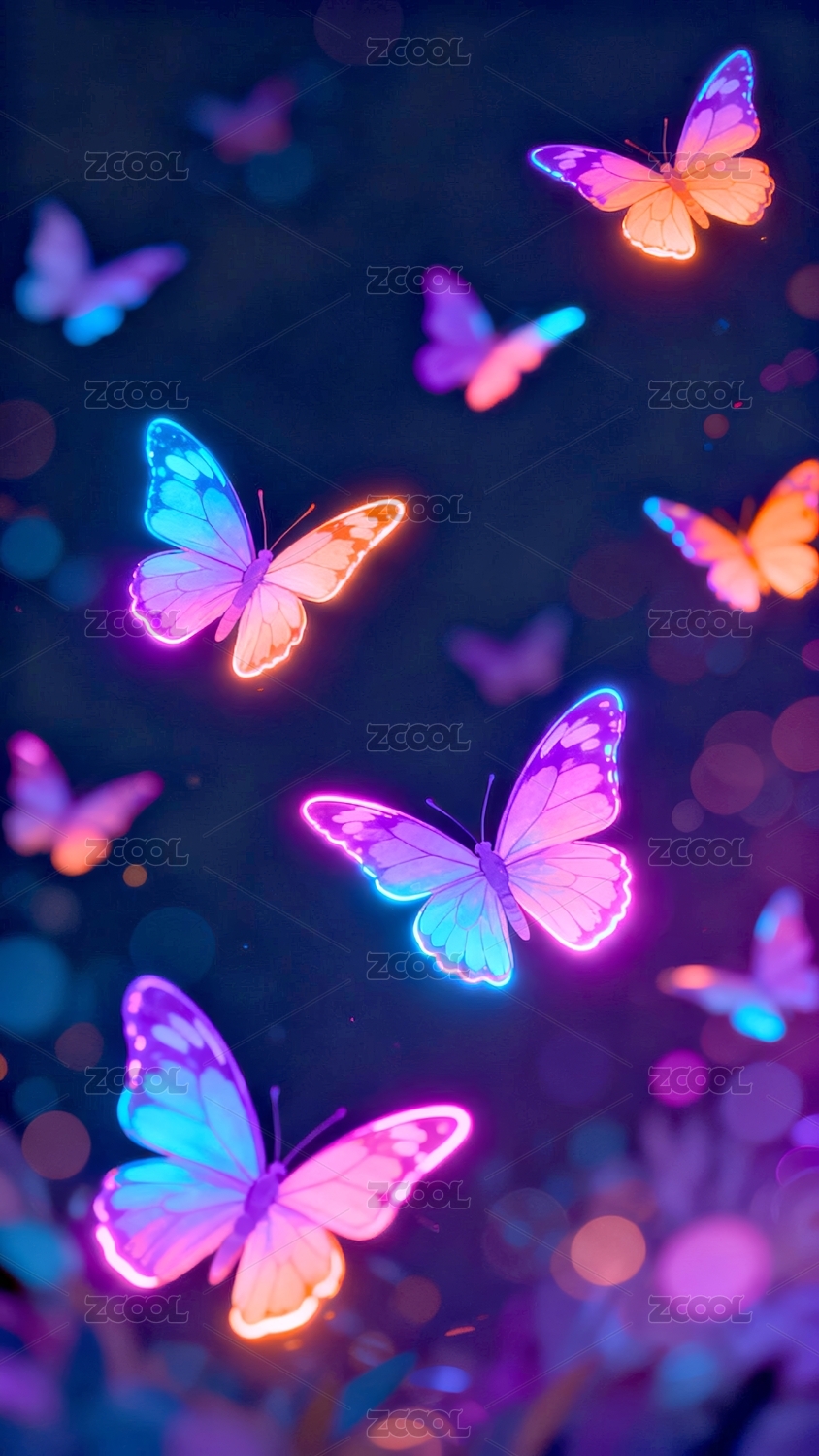 主视觉,商业,壁纸,背景,蝴蝶,炫彩,梦幻,场景,霓虹,光斑