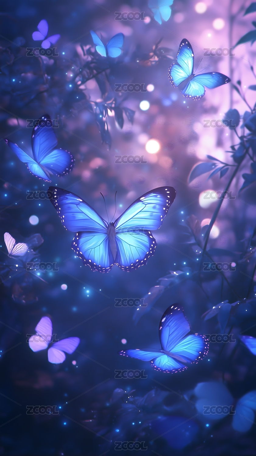 紫境蓝光,群蝶蹁跹织梦幻 关键词