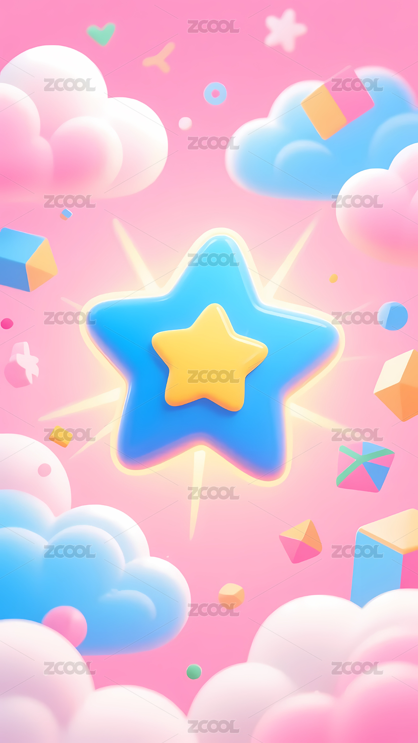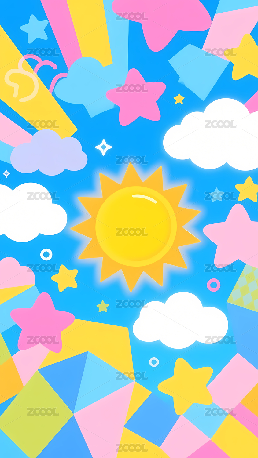 背景,梦幻,装饰,鲜艳,几何,光芒,五角星,云朵,童趣,粉蓝