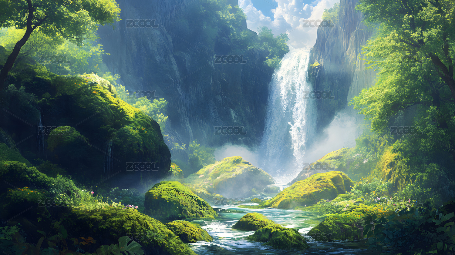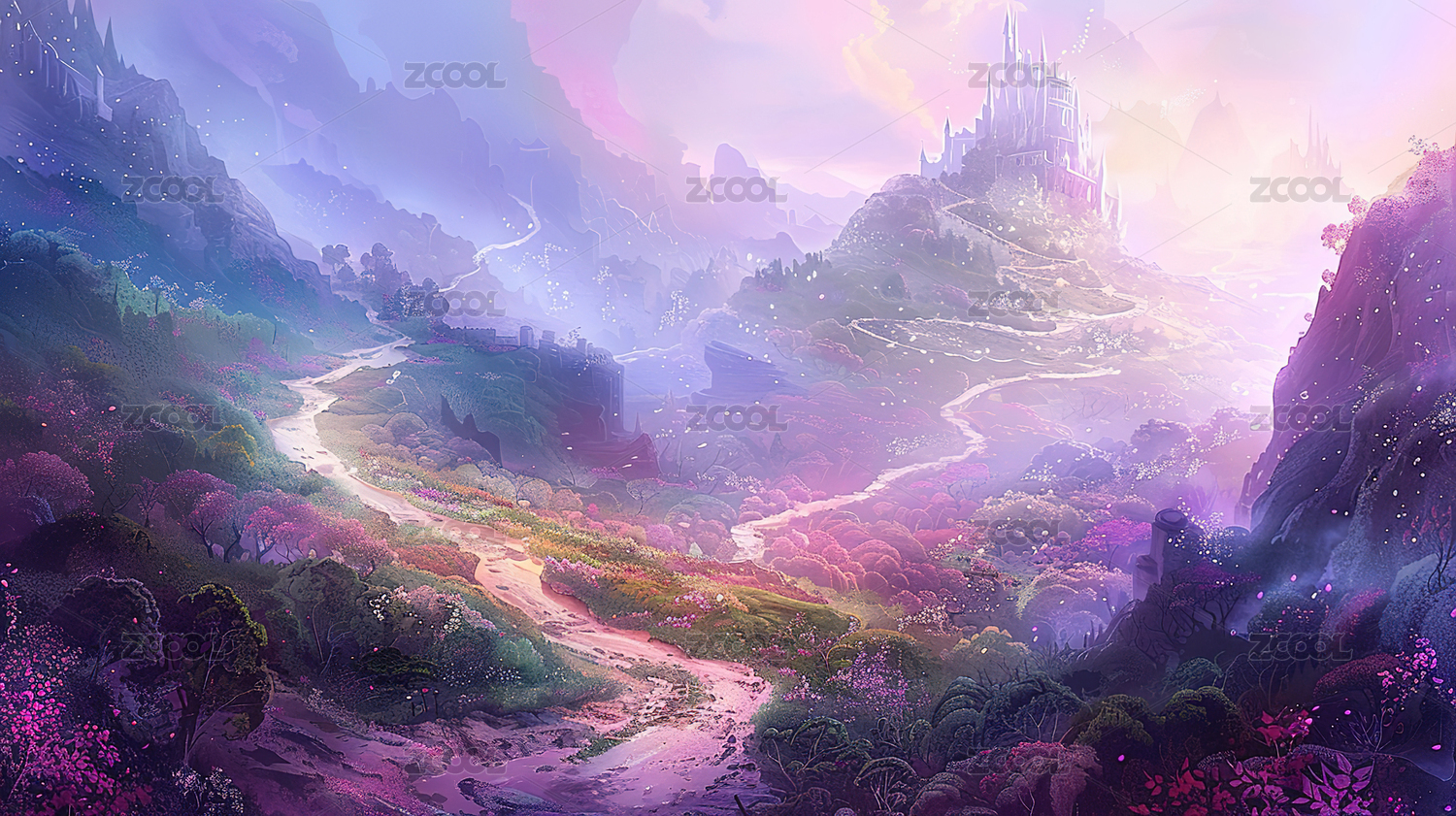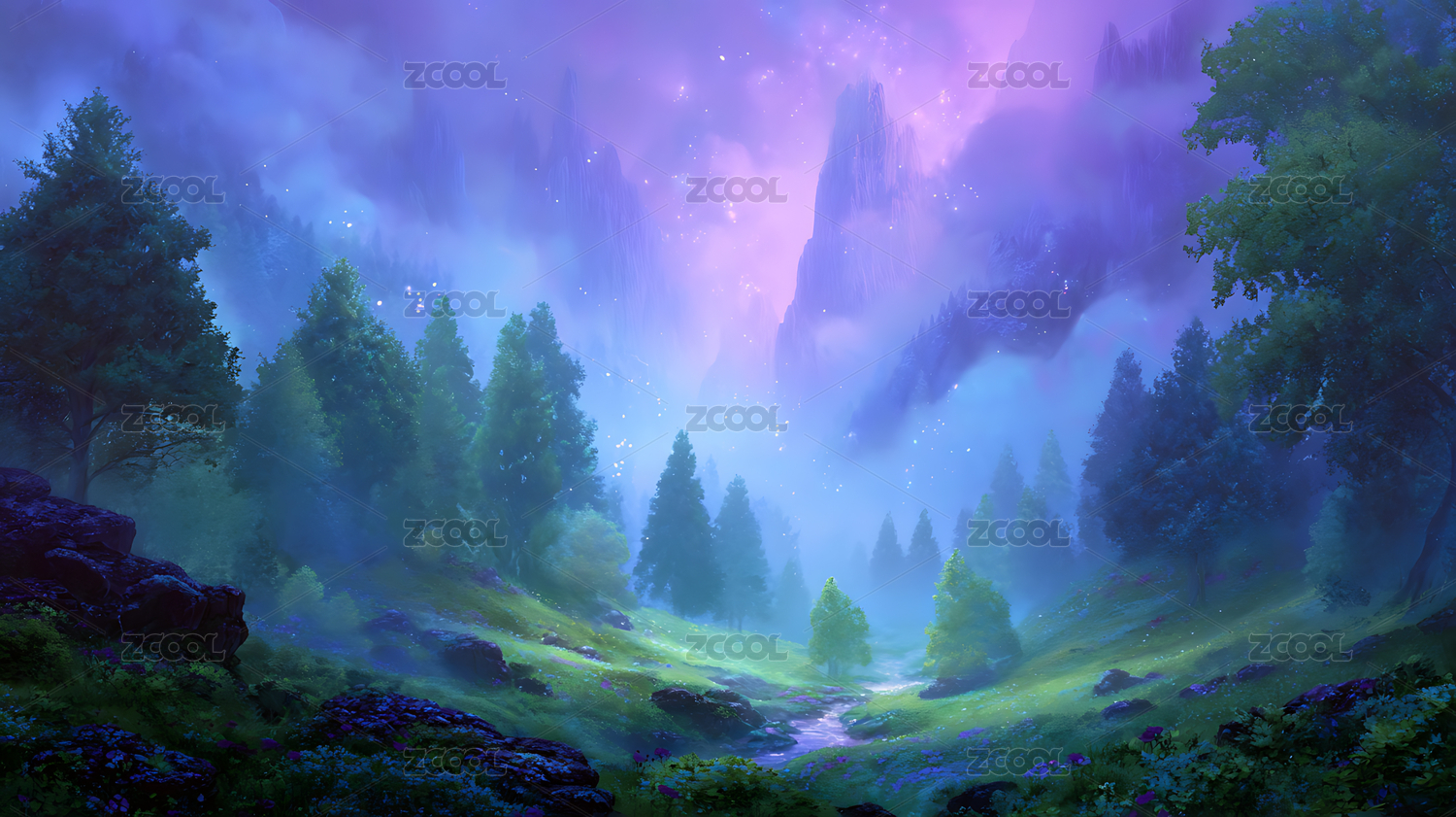 场景,色彩,自然,梦幻,天空,艺术,光影,山峰,树木,仙境