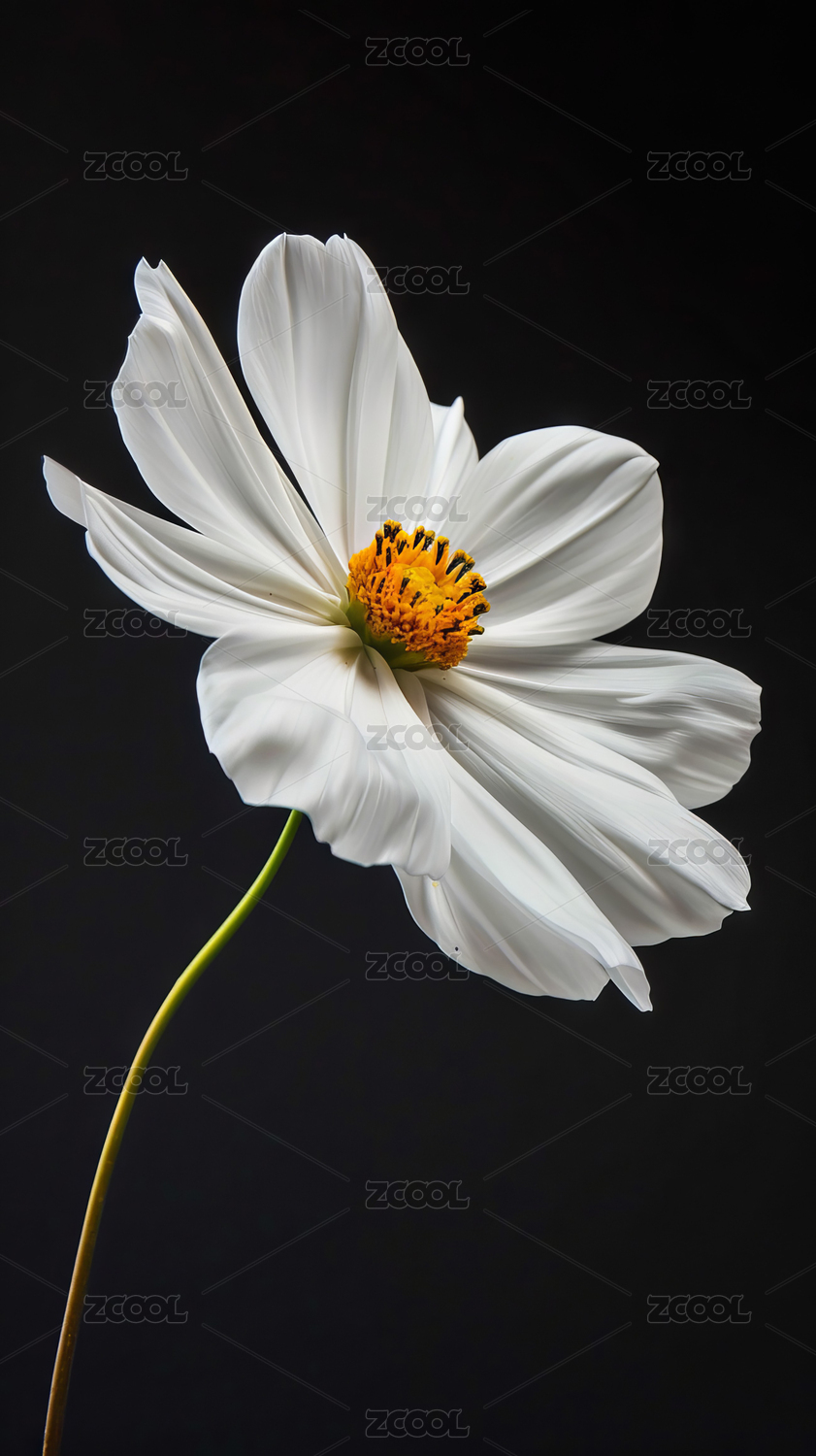 纯黑背景白色洁净花朵