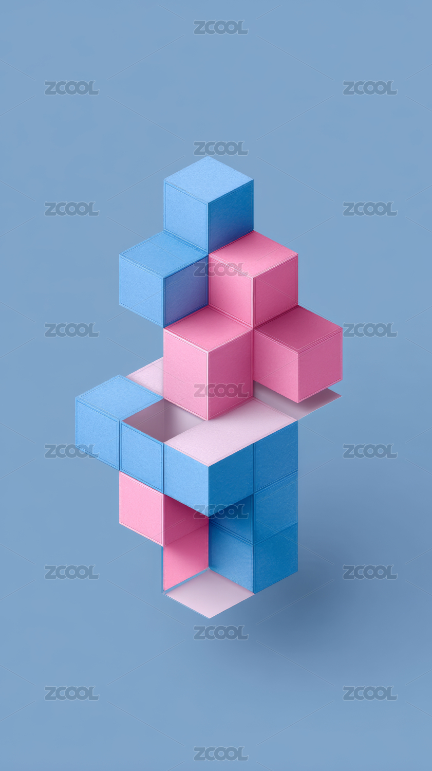 蓝色粉色立方体几何艺术