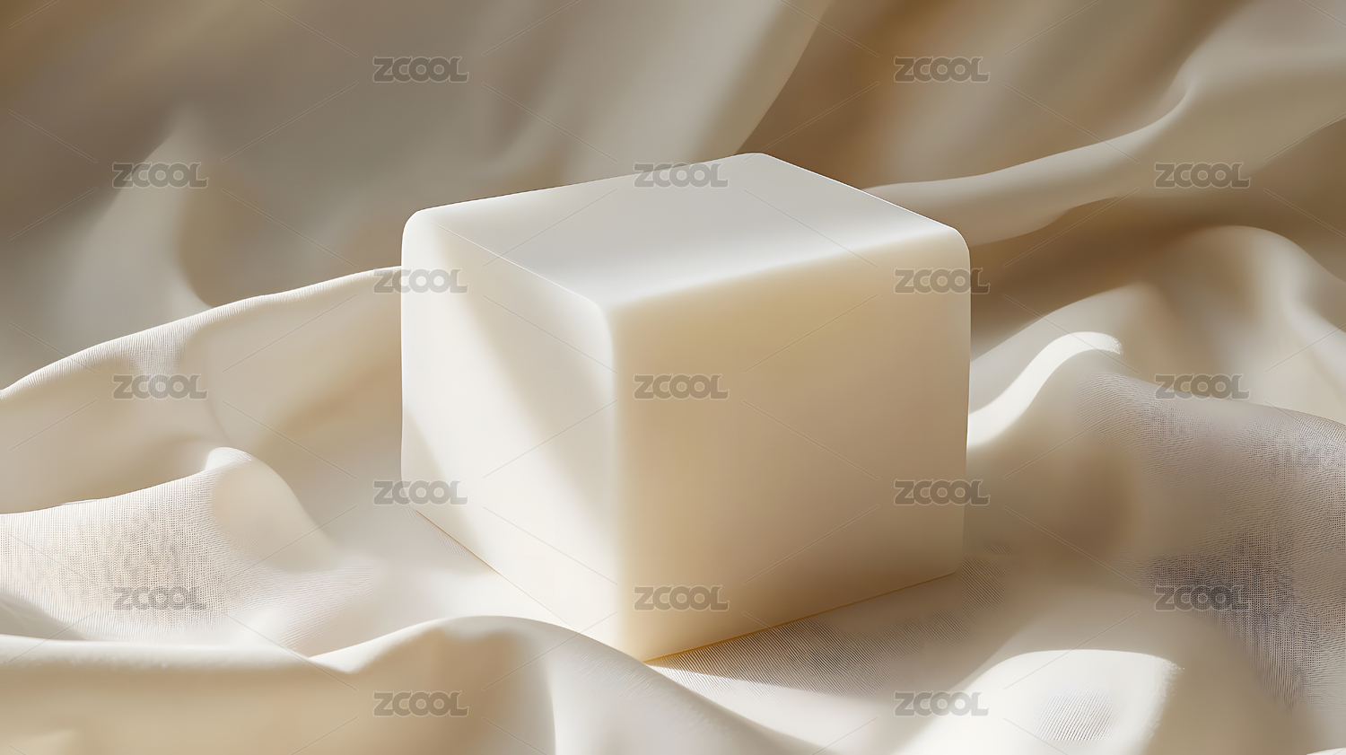 轻柔布料上的白色立方体