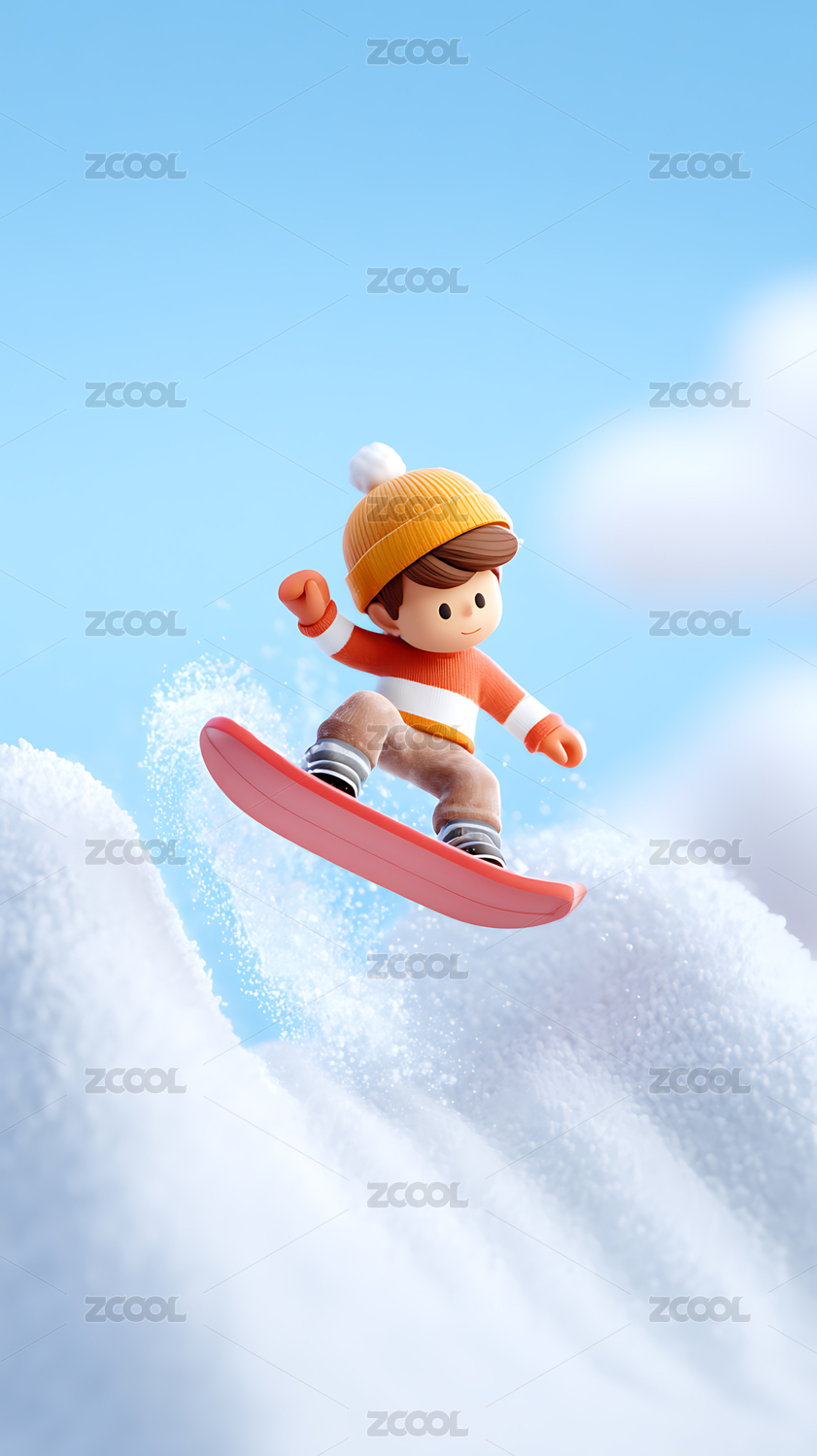 3d卡通滑雪的男孩
