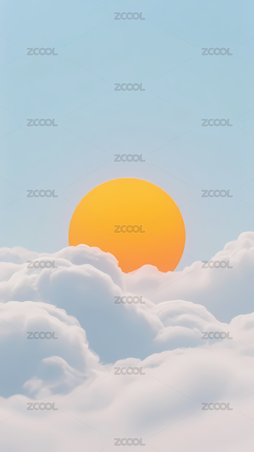 明亮,渐变,简洁,白色,天空,红色,层次,橙色,太阳,云朵