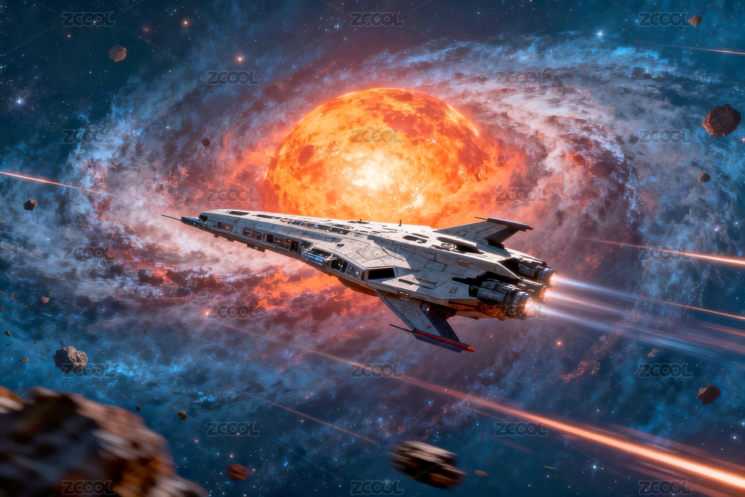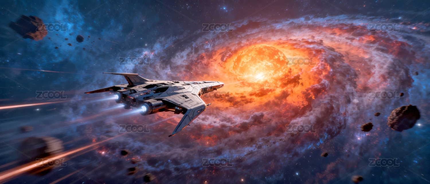 星际飞船穿梭于炽热星云