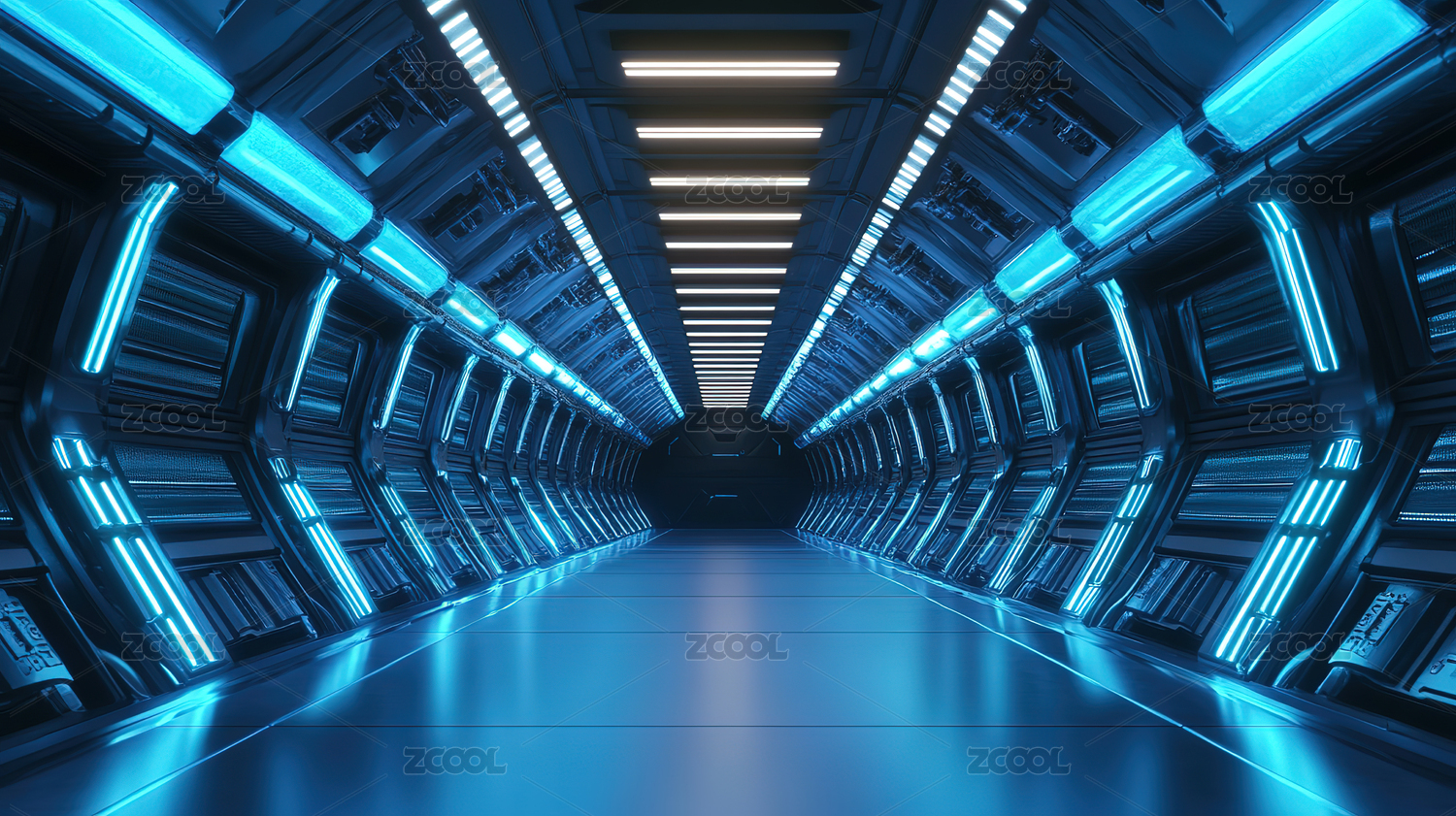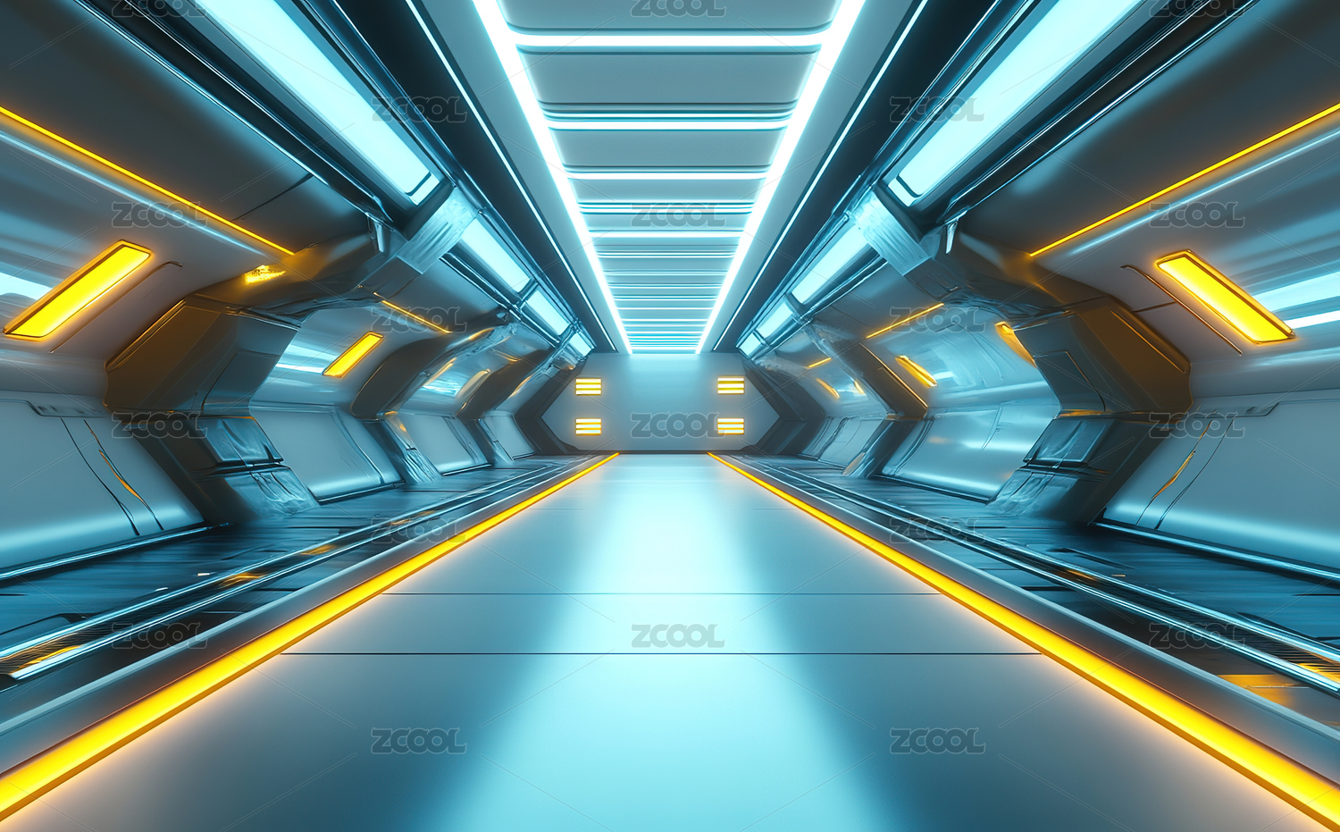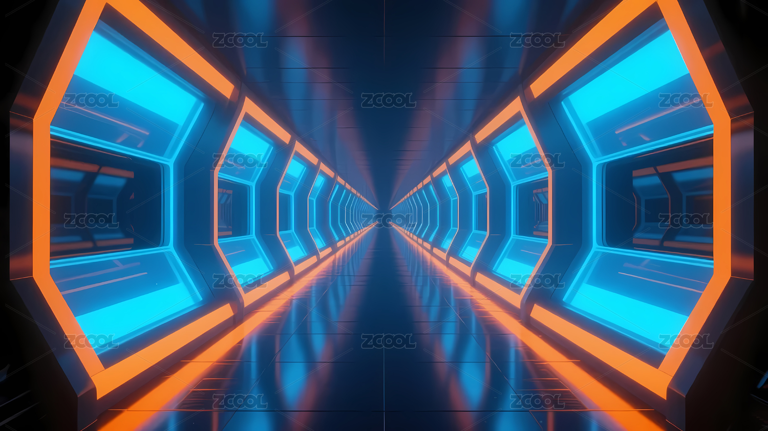 科技,未来,深色,蓝色,橙色,灯光,走廊,对称,冷暖,光影