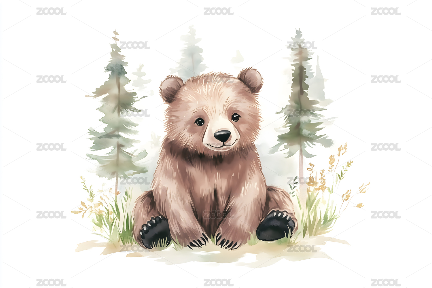 场景,黄色,粉色,艺术,户外,树木,绘画,卡通,动物,森林
