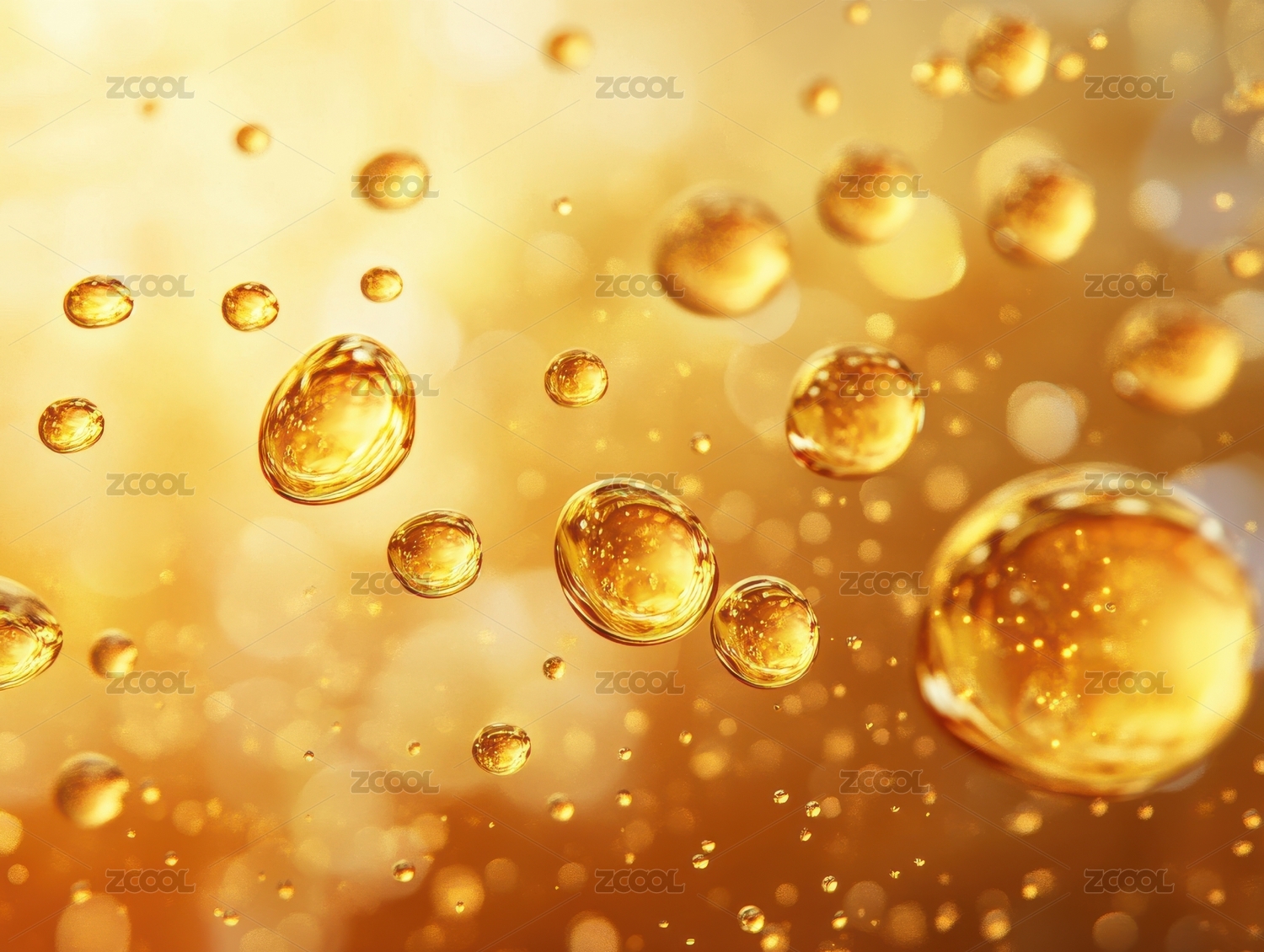 金色液体气泡微观特写