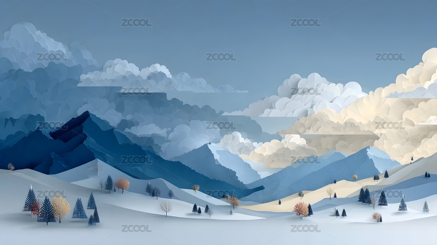 梦幻般的雪山风景场景插画