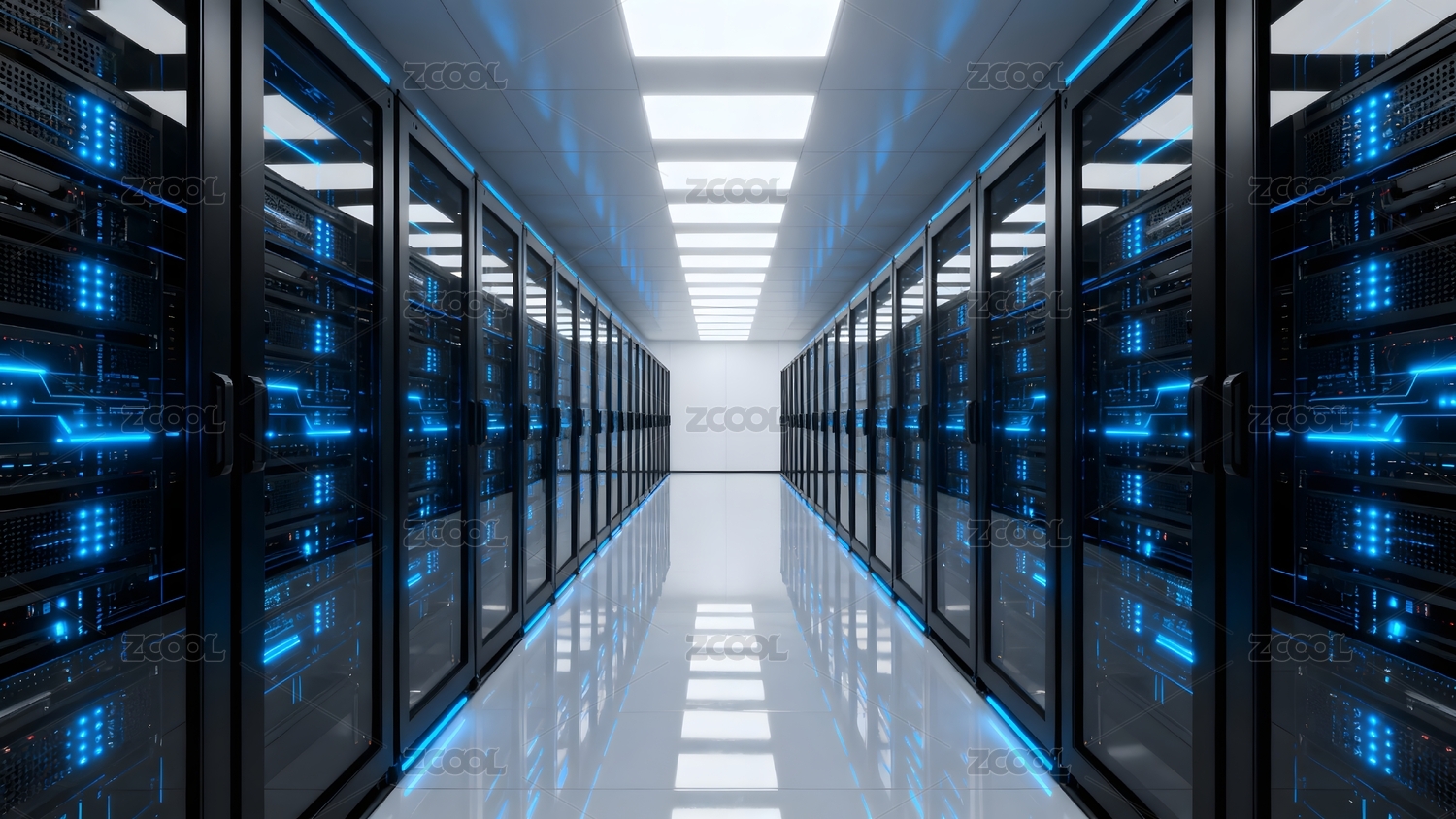 科技感服务器机房蓝色灯光