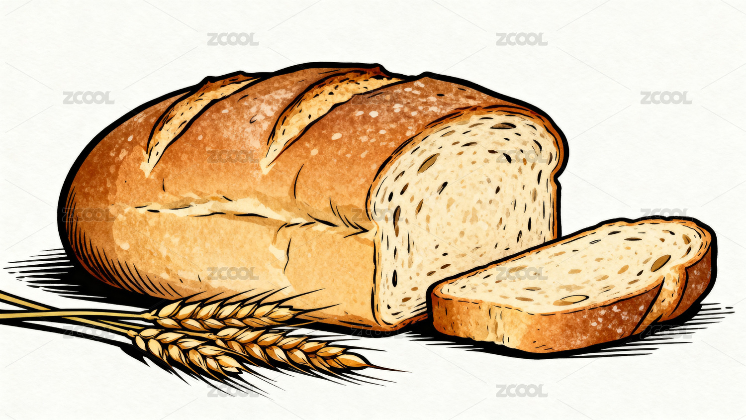 面包与麦穗线条图