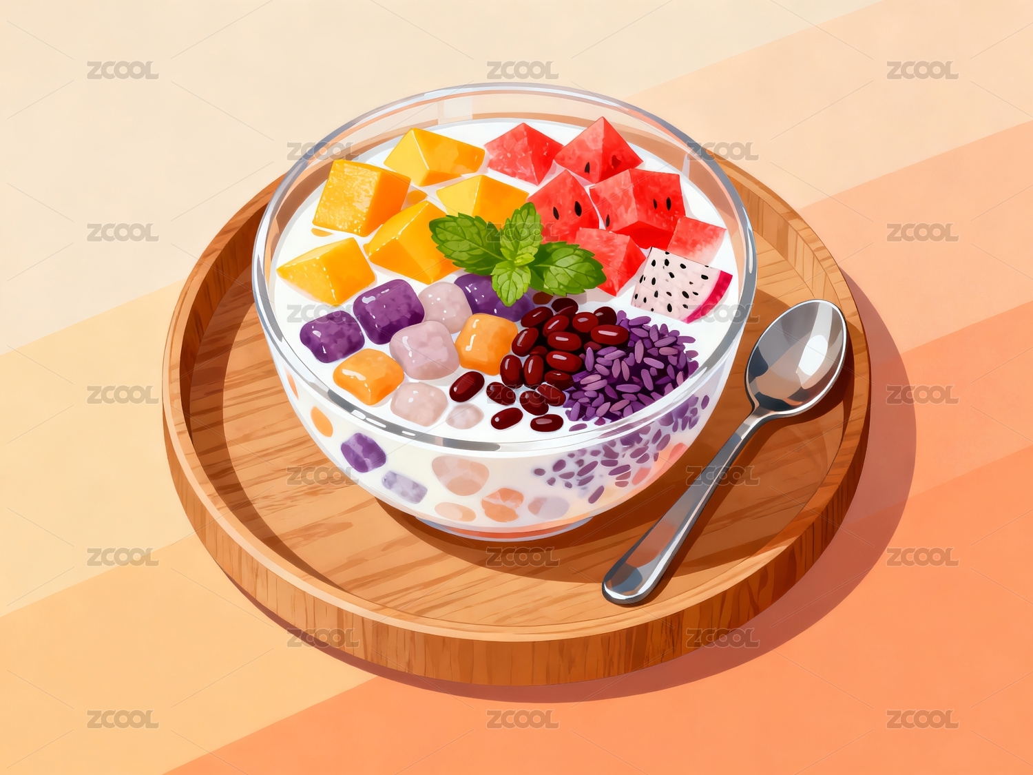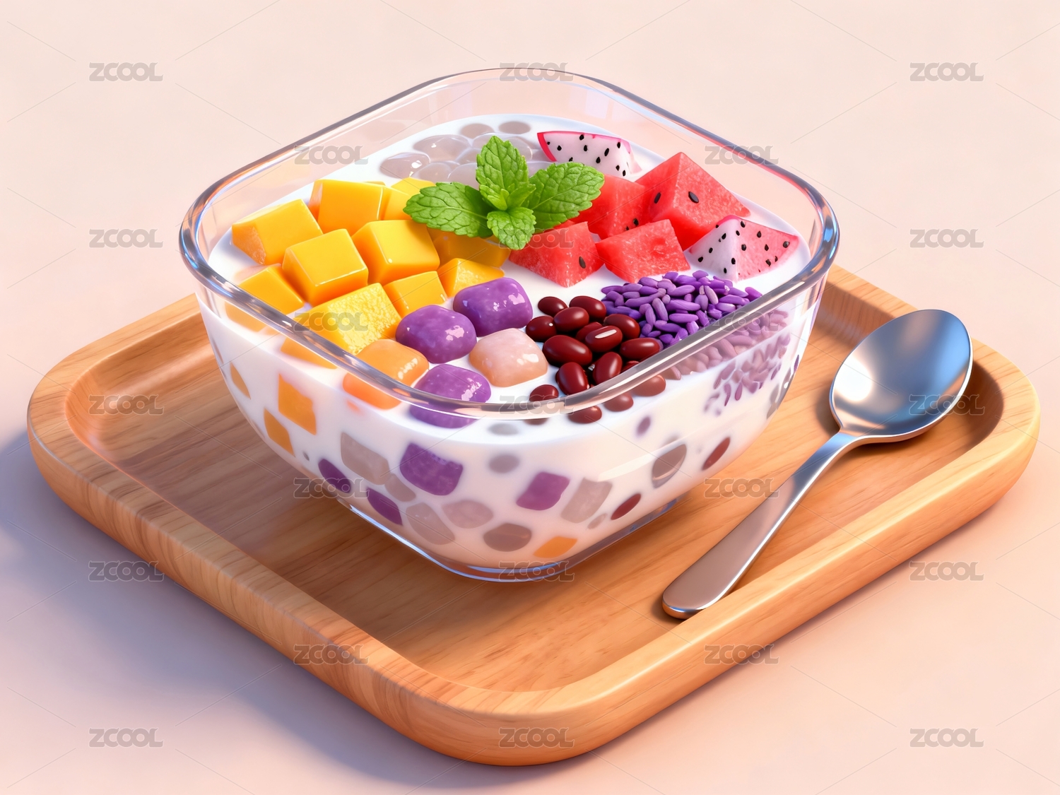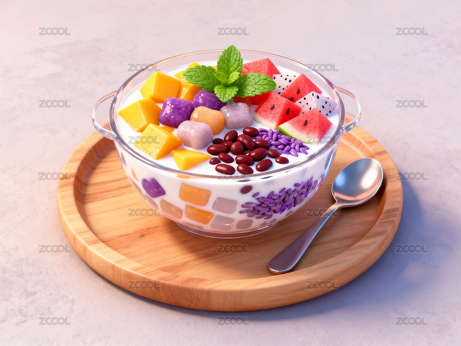 白色,美食,甜点,红豆,饮品,摆盘,水果,薄荷,甜品,透明