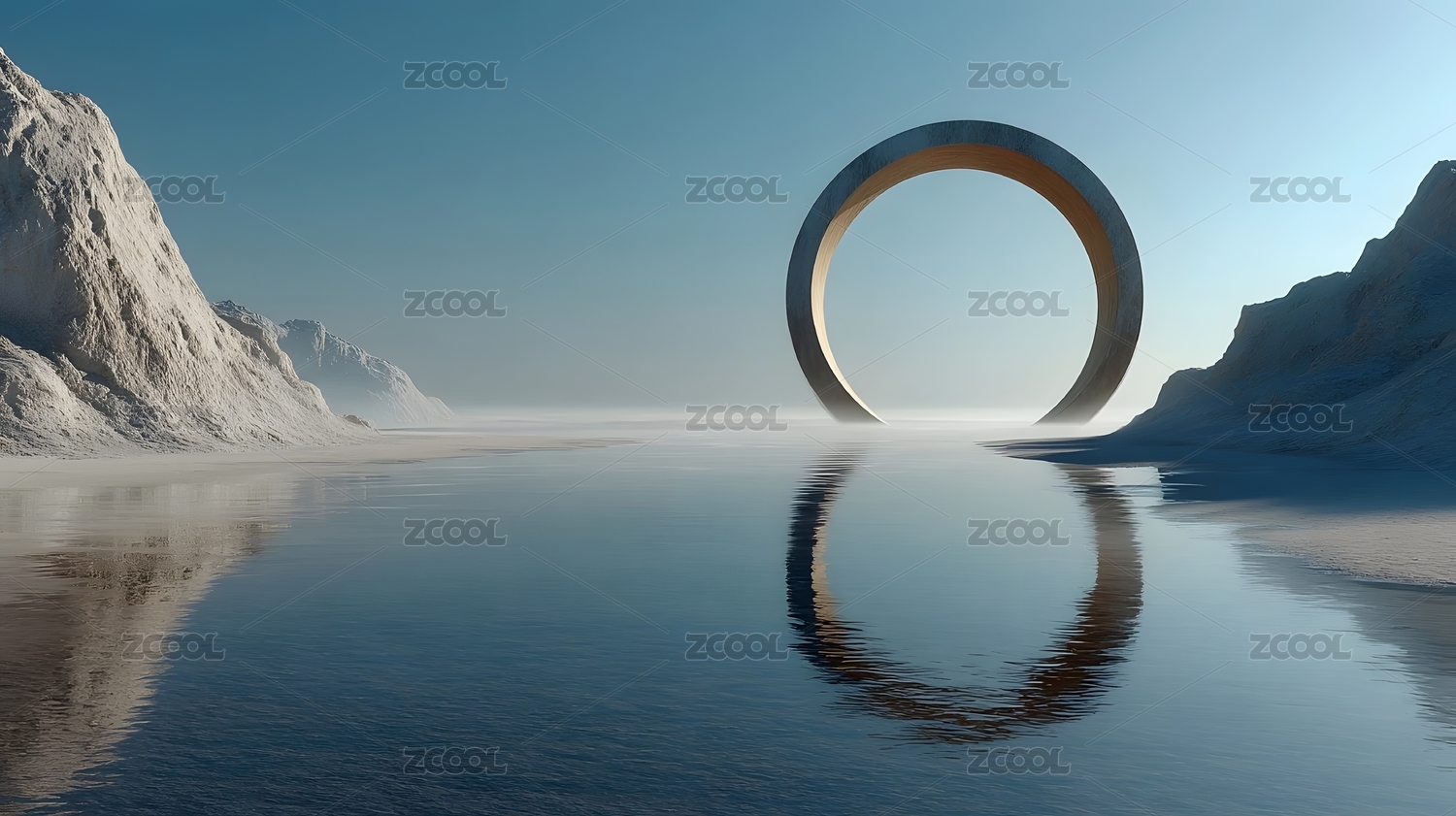 巨型圆环与静谧水面