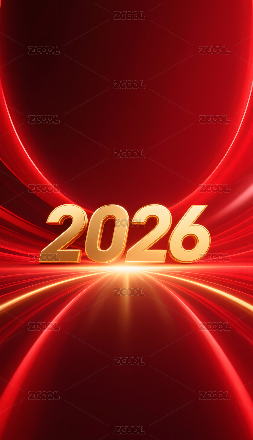 金色数字2026与红色光带背景