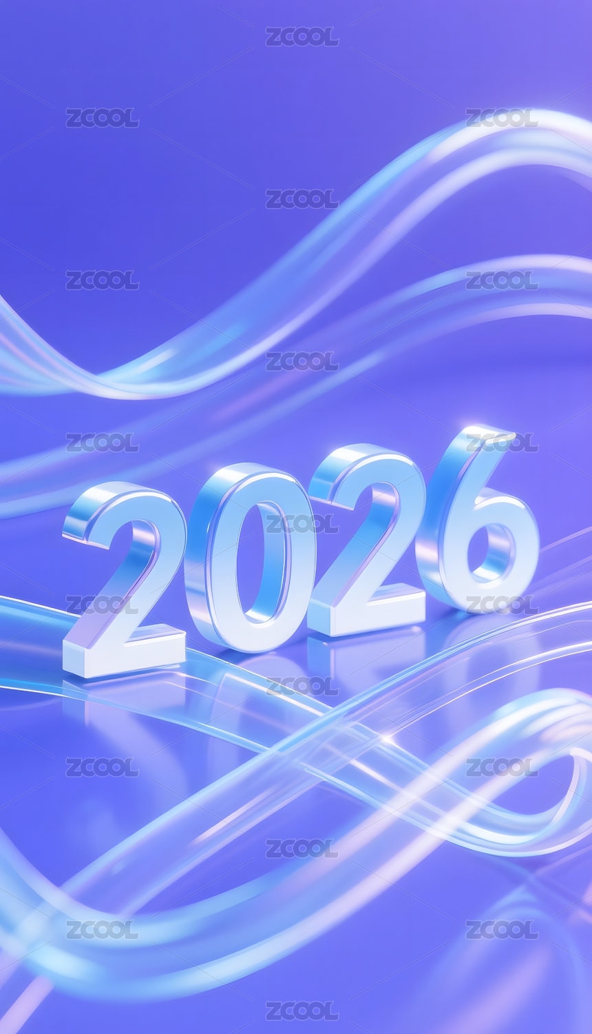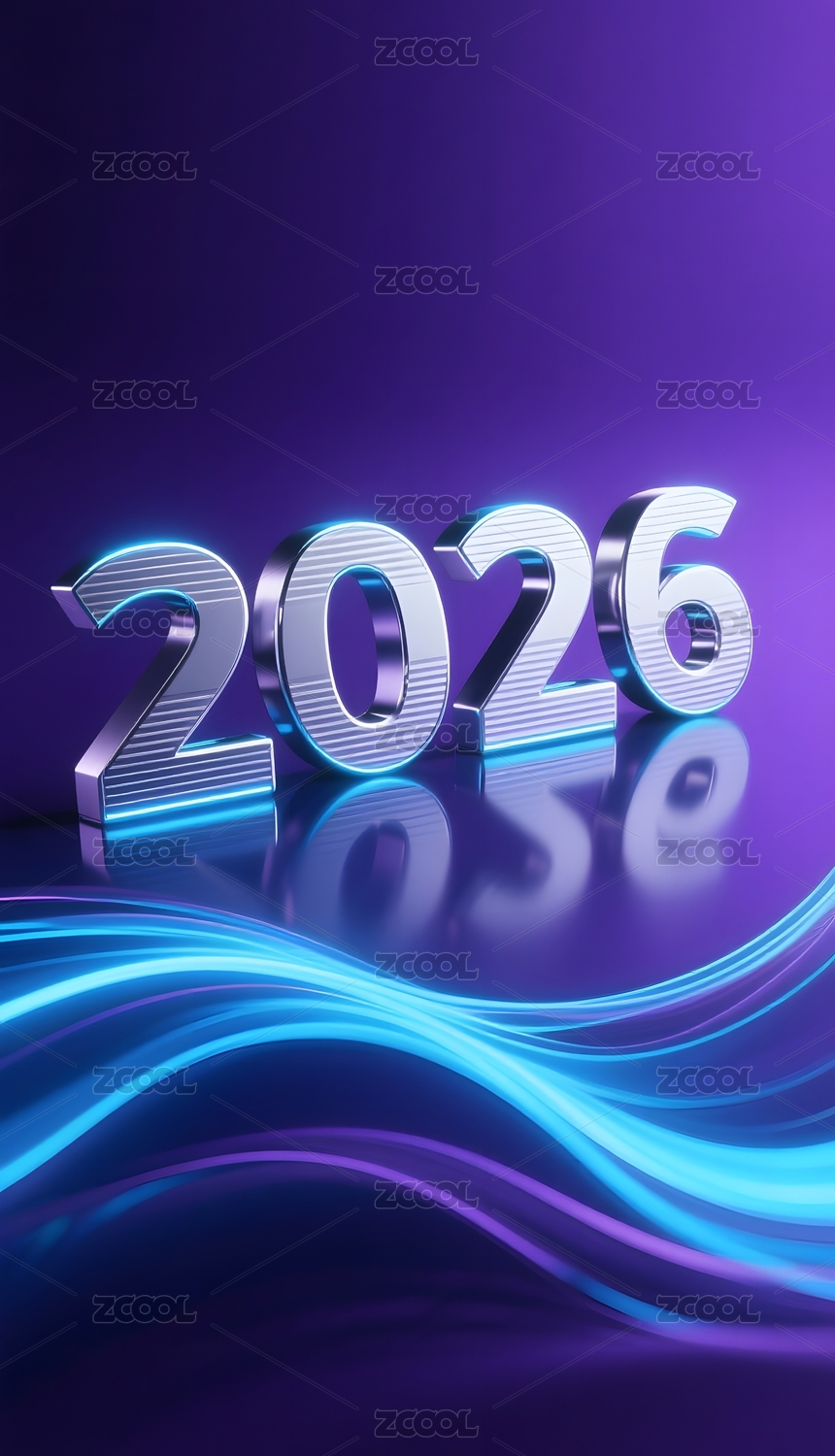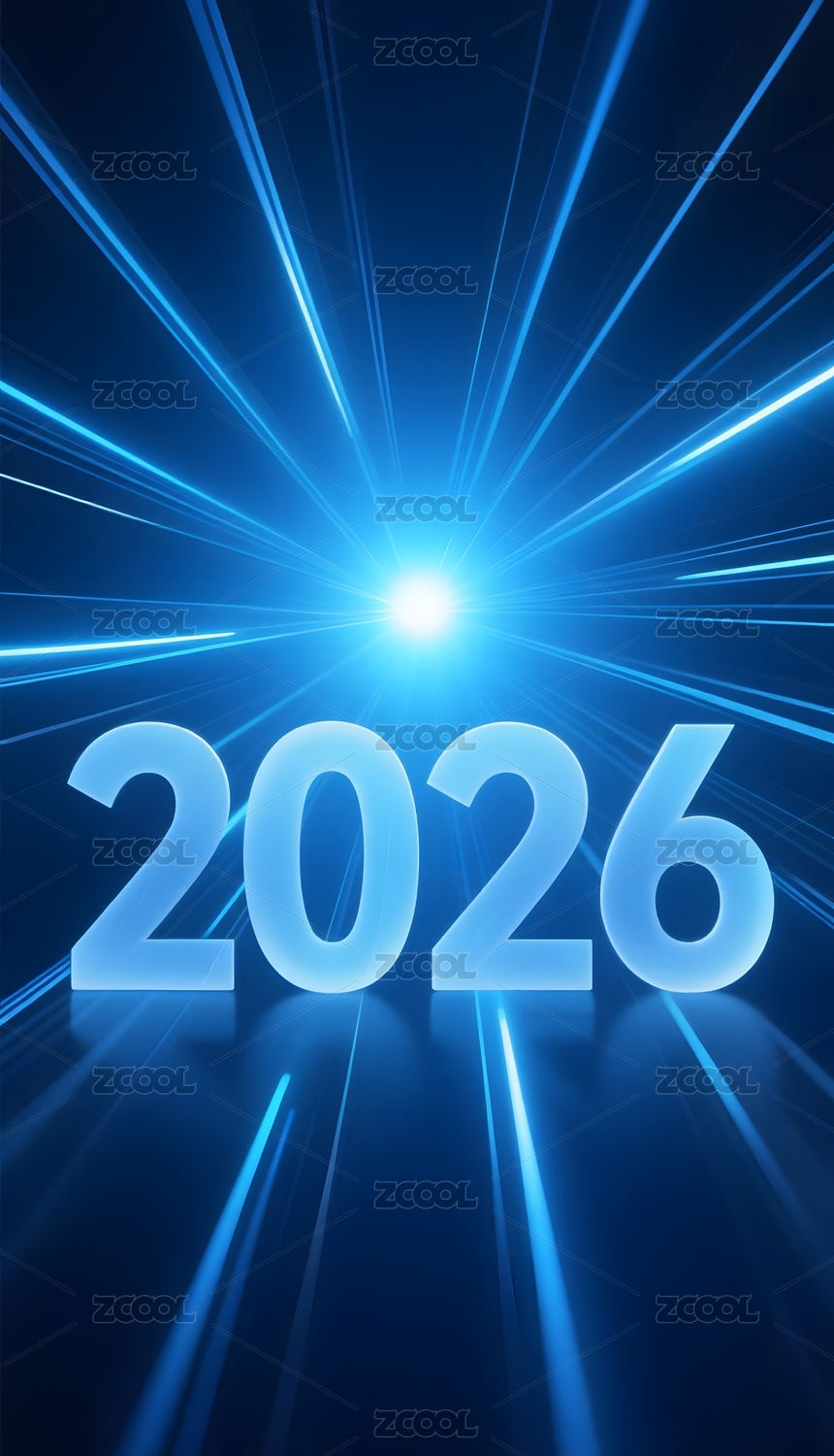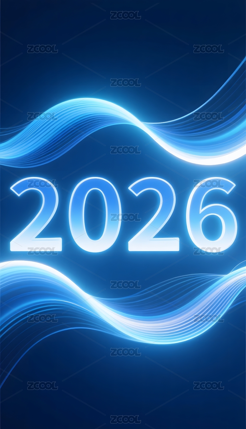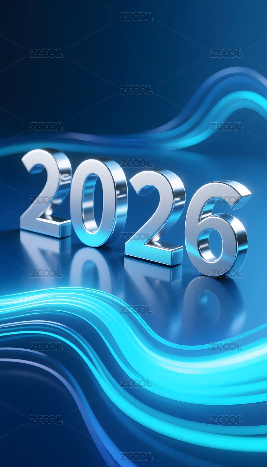 数字,2026,倒影,轮廓,层次,蓝色,背景,线条,效果,空间