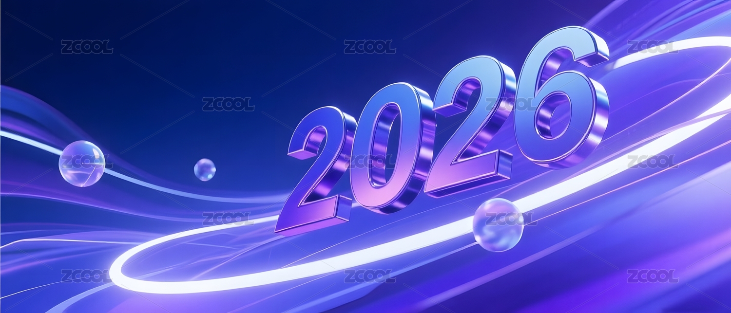 数字,2026,轮廓,层次,反光,蓝色,背景,线条,空间,深度