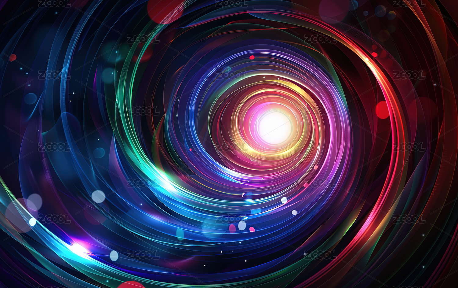 蓝色背景色彩斑斓螺旋状线圈现代科技背景