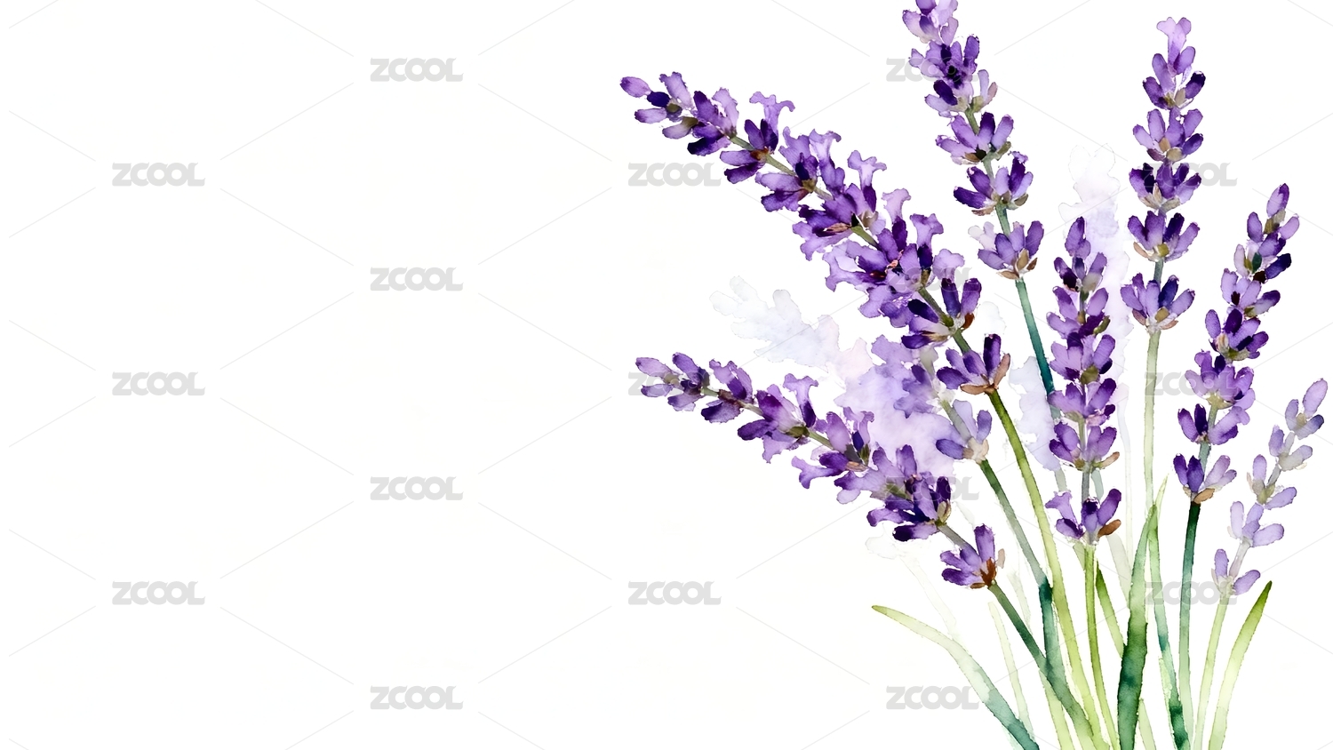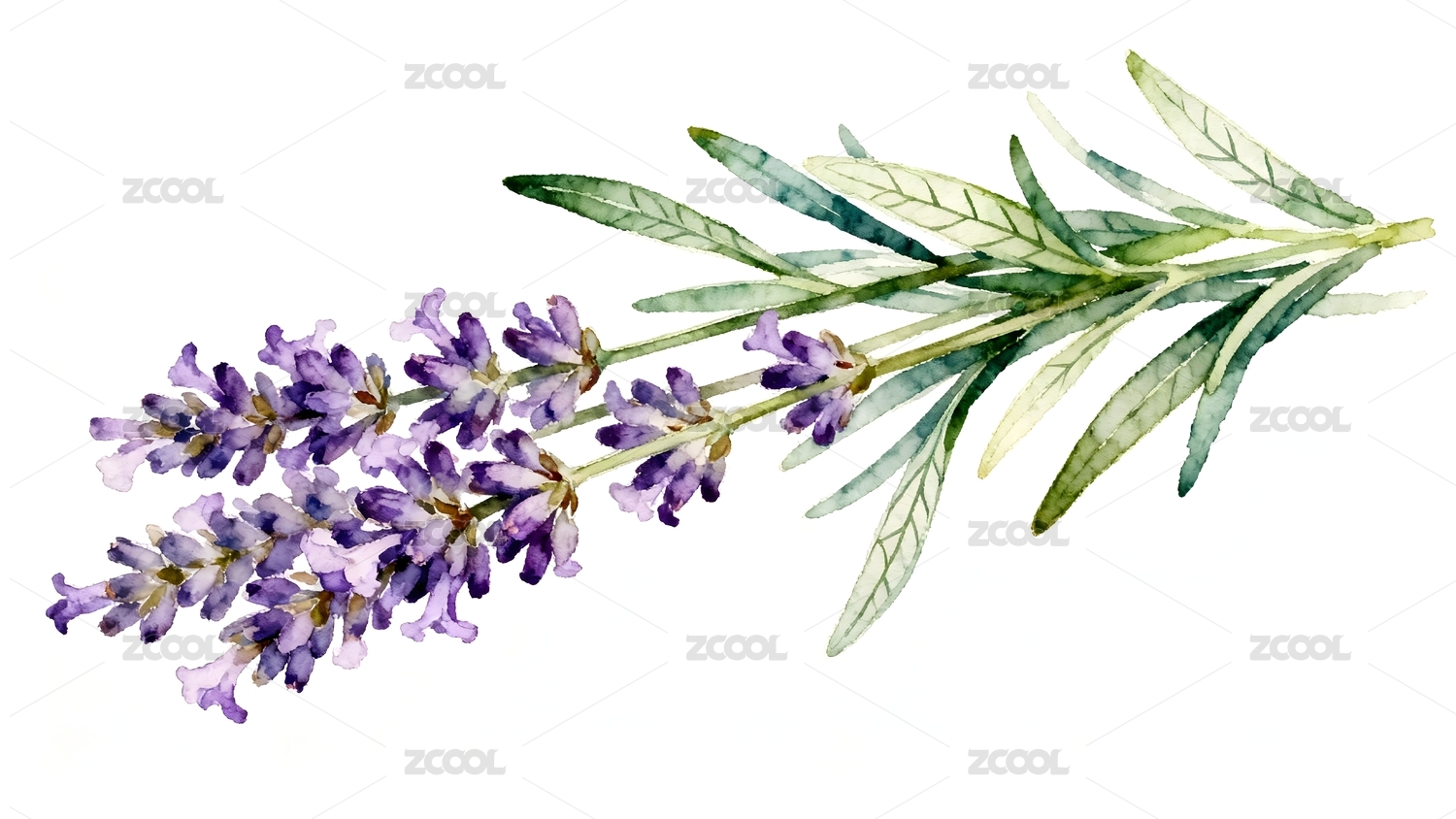 薰衣草,水彩,花朵,紫色,花穗,叶子,绿色,茎,植物,枝条