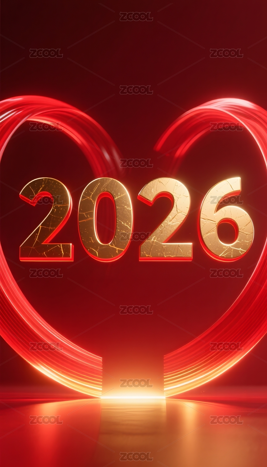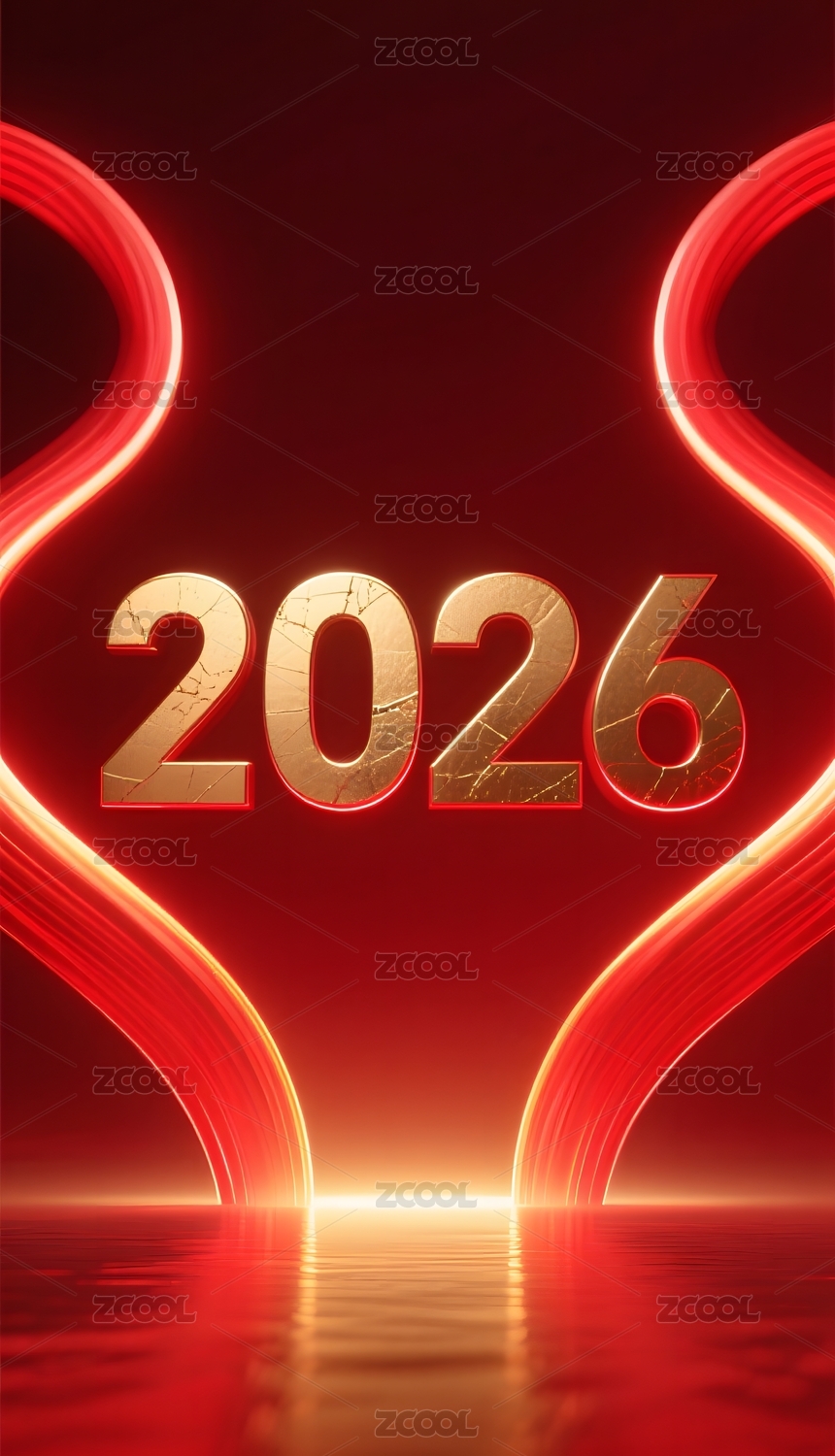 金色数字2026与红色光效背景