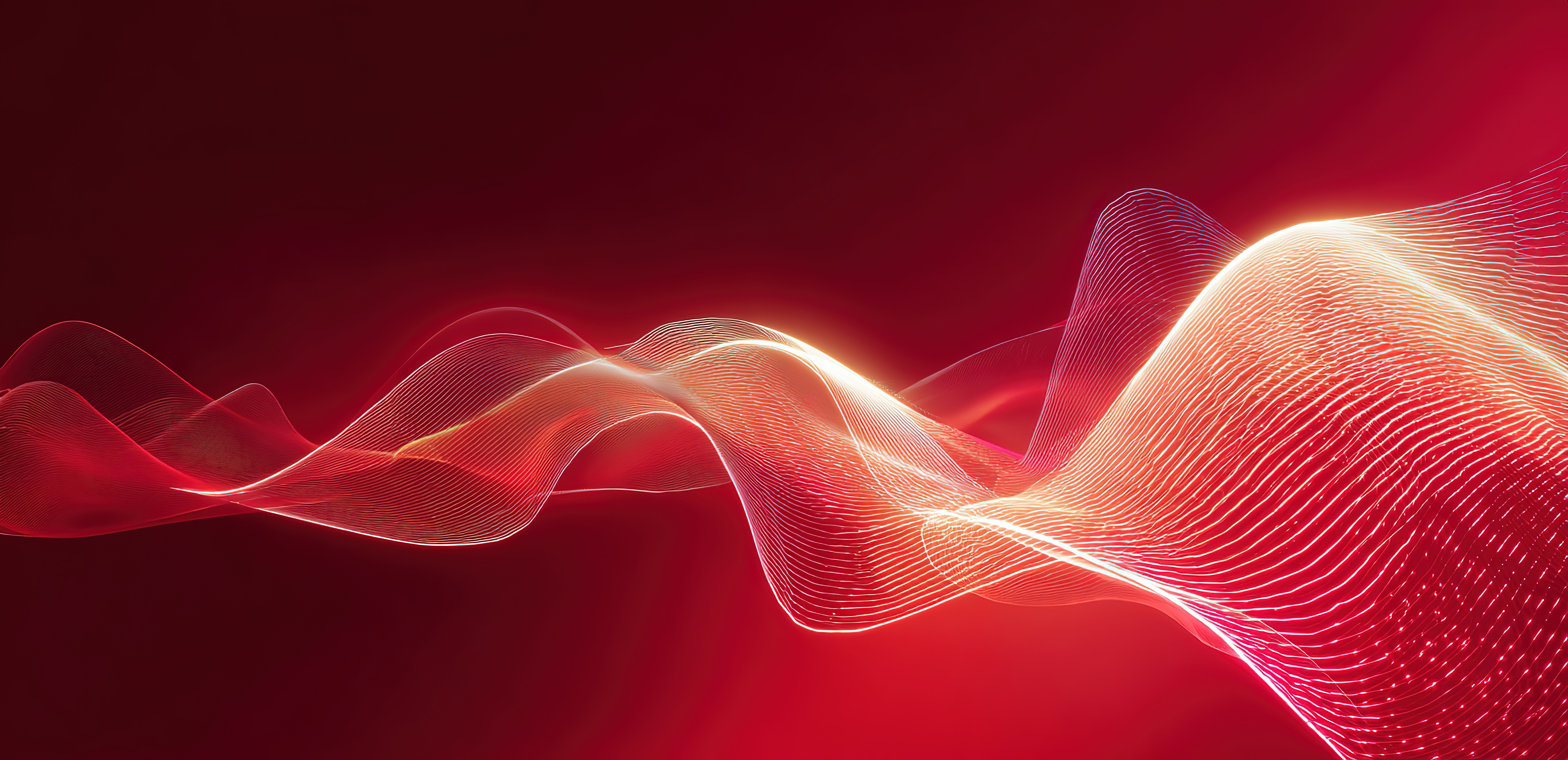 红色背景下的抽象线条光影流动