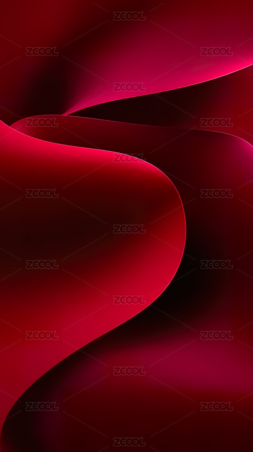 红色绸带抽象图案层次丰富光影交错