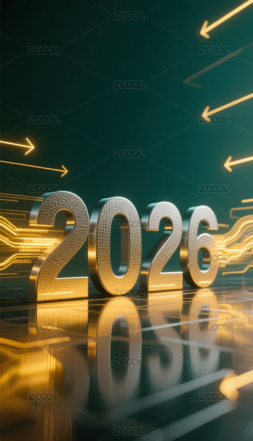 数字,2026,年份,线条,网格,金属,立体,箭头,边框,地面